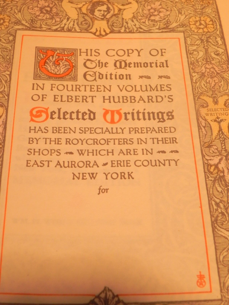 This collection is a must for any follower of Elbert Hubbard. Sold as 14 volume set only for $125.00. Priced at just under $9 each....