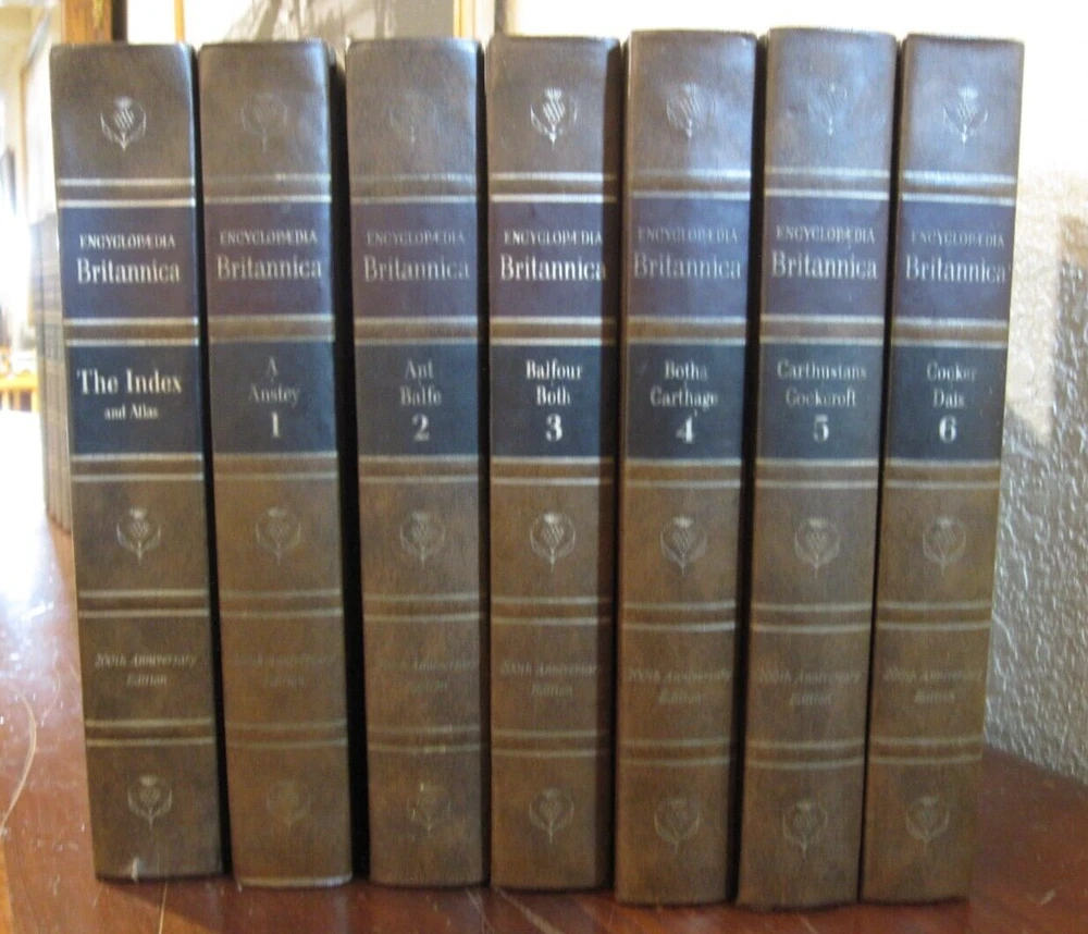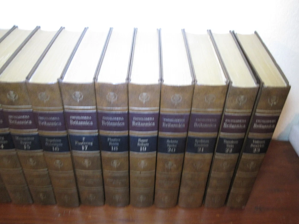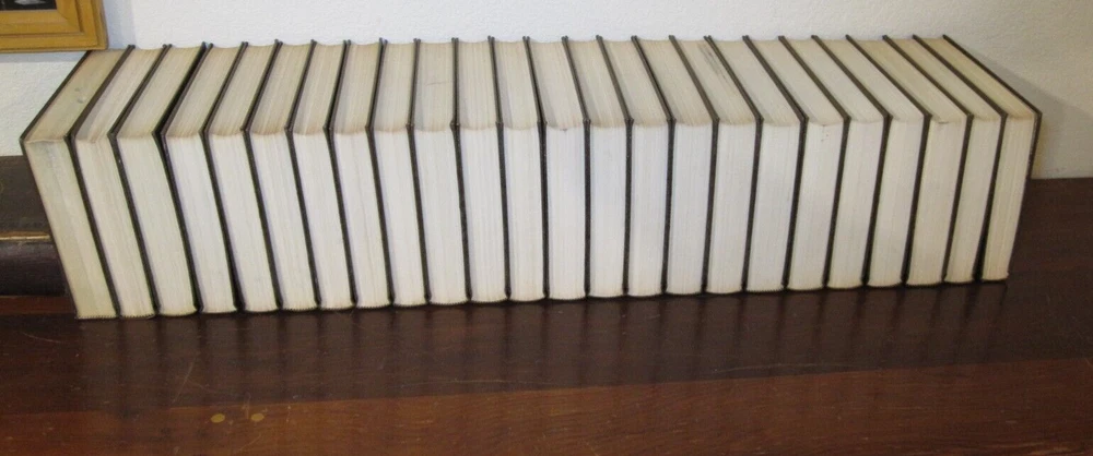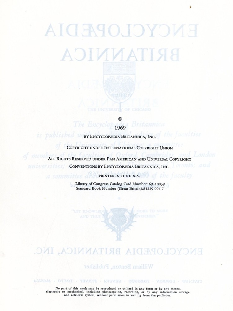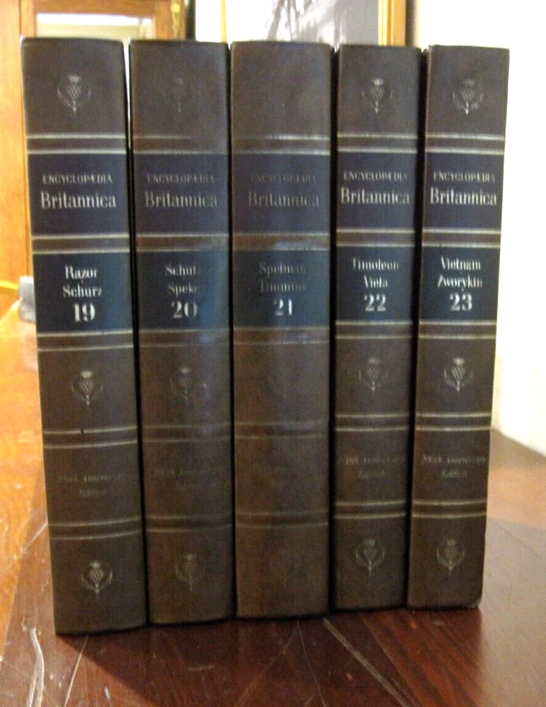 Dive into a world of knowledge with the 1969 200th Anniversary Edition of the Encyclopedia Britannica, a 23-book set that spans an array of topics from art to science. The sumptuous leather-bound volumes are a testament to the enduring appeal of printed reference materials, offering a nostalgic journey through the intellectual landscape of the mid-20th century. Each book in this collection is a work of reference crafted for both the avid scholar and the casual reader, featuring detailed entries authored by various experts. Published by Encyclopedia Britannica, Inc, this set is a treasure for anyone with a passion for learning or a collector seeking a monumental piece of historical literature. Whatever wear you can see in these images is minimal. The set belonged to my in-laws and has been on a shelf in their home since I first saw them in 1983. They moved into that house in 1967. My mother in law worked for the Pasadena Unified School district in Southern California and probably got these thru that organization. No school ownership marks tho.