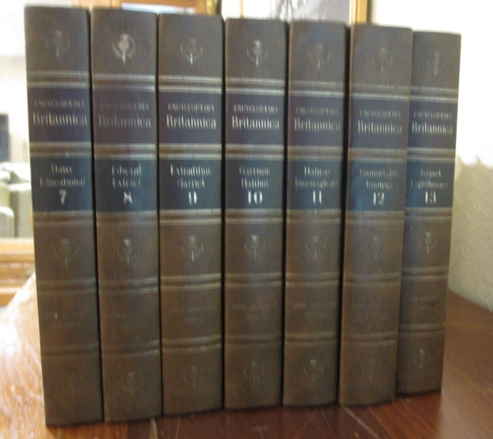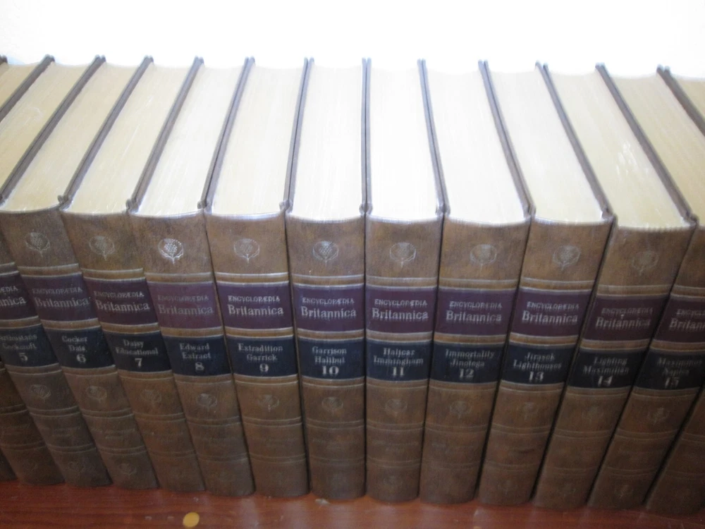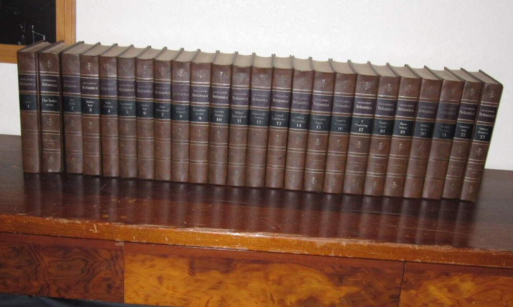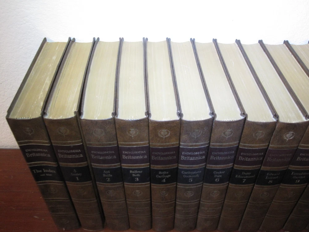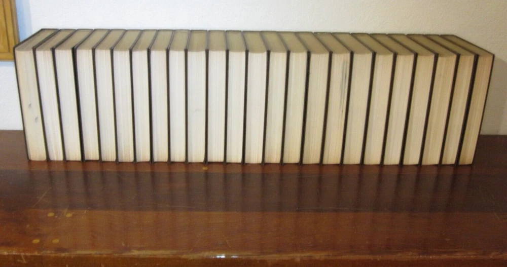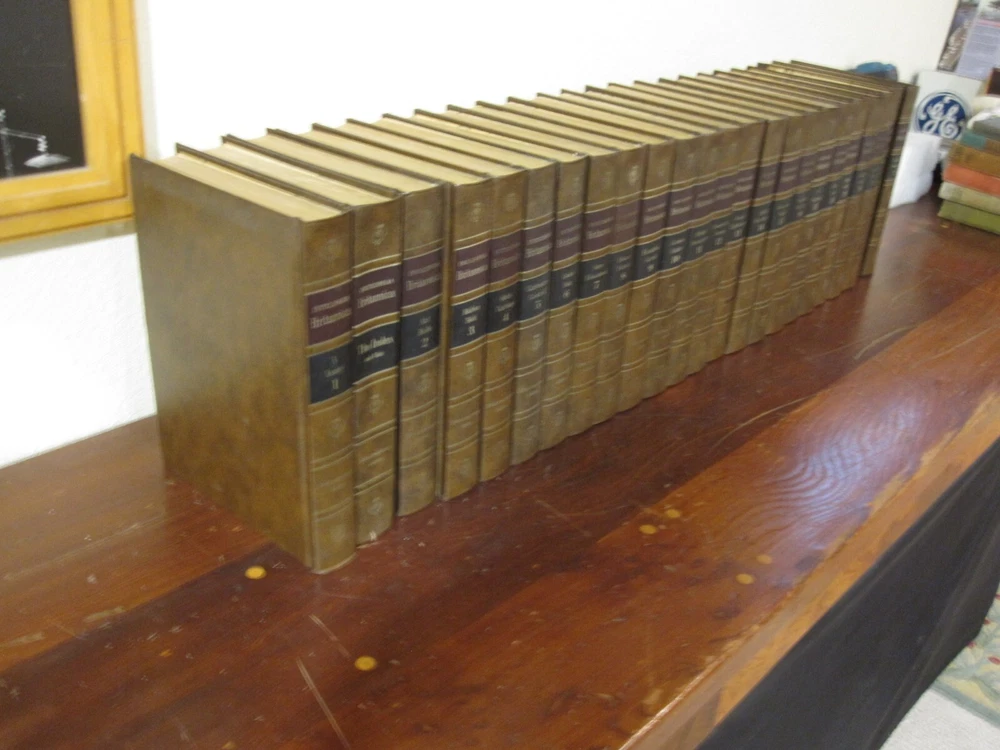 Dive into a world of knowledge with the 1969 200th Anniversary Edition of the Encyclopedia Britannica, a 23-book set that spans an array of topics from art to science. The sumptuous leather-bound volumes are a testament to the enduring appeal of printed reference materials, offering a nostalgic journey through the intellectual landscape of the mid-20th century. Each book in this collection is a work of reference crafted for both the avid scholar and the casual reader, featuring detailed entries authored by various experts. Published by Encyclopedia Britannica, Inc, this set is a treasure for anyone with a passion for learning or a collector seeking a monumental piece of historical literature. Whatever wear you can see in these images is minimal. The set belonged to my in-laws and has been on a shelf in their home since I first saw them in 1983. They moved into that house in 1967. My mother in law worked for the Pasadena Unified School district in Southern California and probably got these thru that organization. No school ownership marks tho.