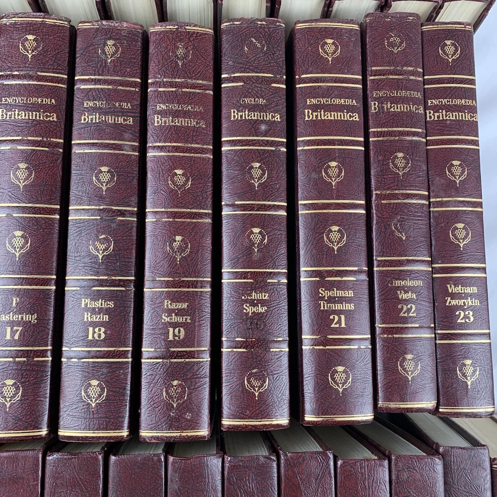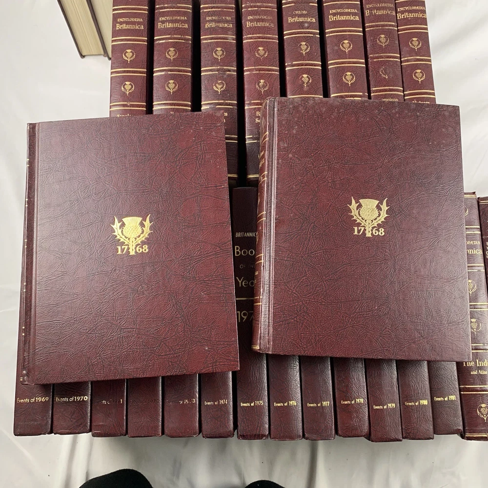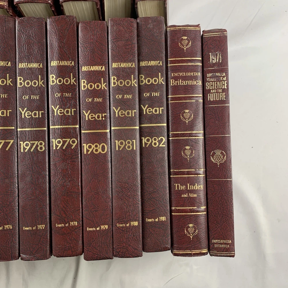 The set is complete however is just missing book #5 in the set. books have been sitting in storage and may need to be cleaned however they are in overall good condition. aside from the 23 vol set (missing #5) there is also the books of the year from 1970-1982 as well as the index atlas. Believe there are 37 books total. The set might need to be sent in 2 different boxes because if it was sent in1 box it may be close to 100 pounds. Please look at all photos for a detailed inspection of the item. I put effort towards ensuring my items are always described honestly, so if there are any imperfections I try to disclose them in the photos. For relevant listings you can find the measurements in the photos, if you don’t see the measurement you need or to request more details/photos please don’t hesitate to message me directly! Please ask all questions prior to purchasing!! Items will be carefully packaged and shipped within 2 business days after payment is received. If immediate shipment is required please reach out upon purchase. Also, check out my store for other items like this one, I am constantly restocking with new items! Would love to do business with you, Thank you for your interest!