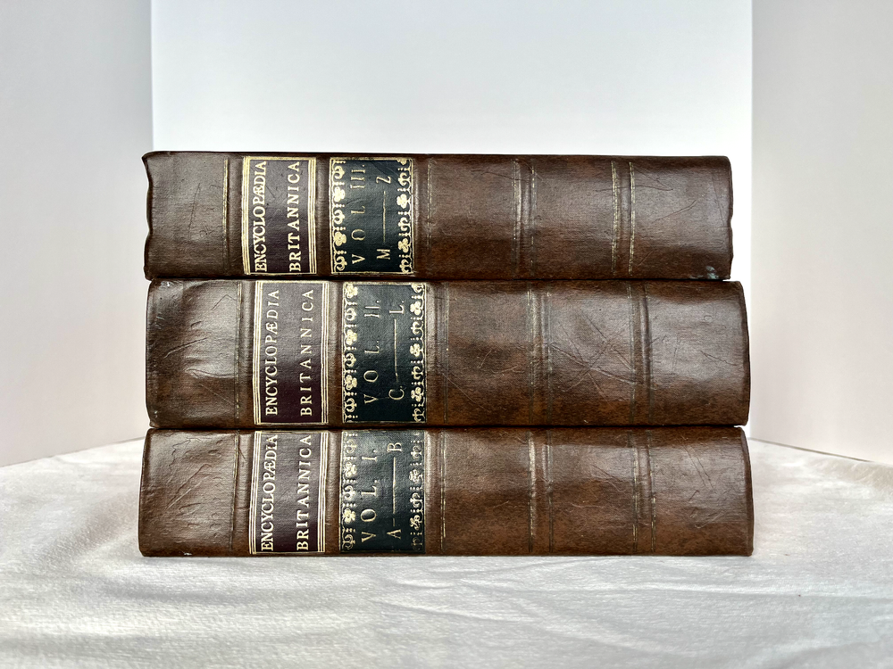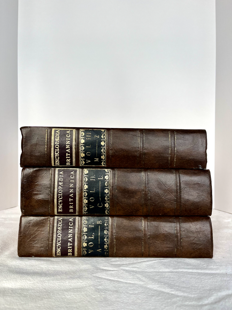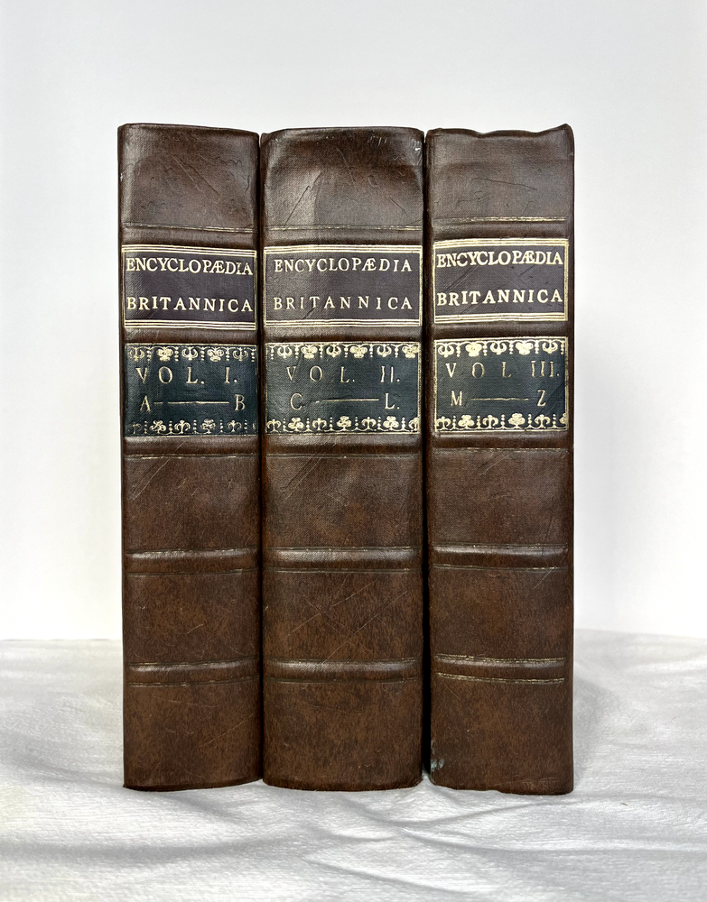 Imprint of the original: Edinburgh: Printed for A. Bell and C. Macfarquhar and sold by Colin Macfarquhar, 1768-1771. Facsimile edition, published by the Encyclopedia Britannica, 1968-1971 to commemorate the 200th anniversary of the first edition of the Encyclopaedia Britannica, or a Dictionary of Arts and Sciences. Hardbound in brown faux-leather with gilt titles on spines. Facsimiles have simulated foxing inside, but this is to replicate their authentic look. Contents: Vol. 1. A-B; Vol. 2. C-L; Vol. 3 M-Z. This is an oversized or heavy book, which requires additional postage for international delivery outside the US. Seller Inventory # 2501230009