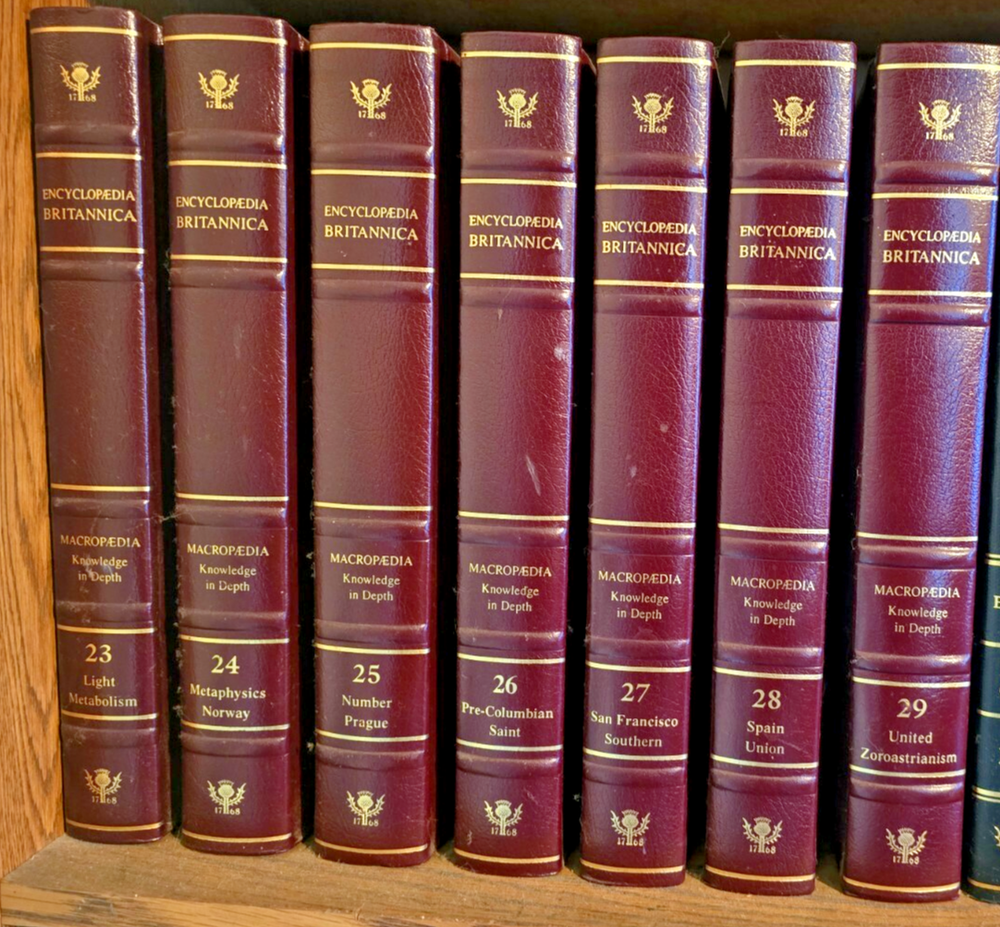 The product is a vintage 15th edition 33 volume set of Encyclopedia Britannica, published by Encyclopedia Britannica, Inc in 1994. This collectible set features a leather binding and is written in English. It serves as a comprehensive reference collection on a wide range of topics covered in the field of encyclopedias. With its detailed content and elegant leather cover, this set would be a valuable addition to any collector's library or a great gift for those interested in reference books.