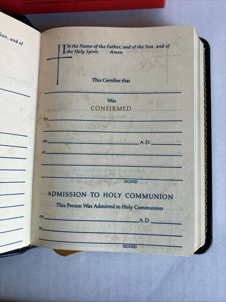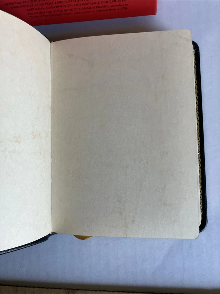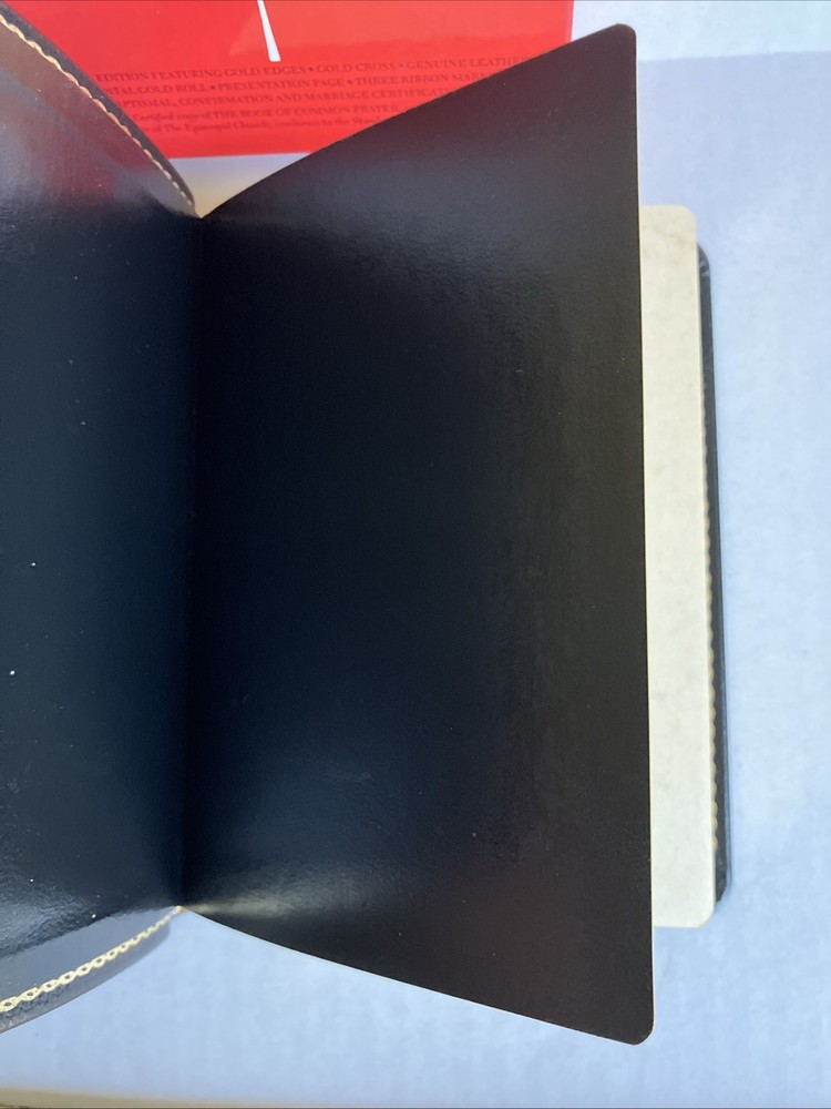 This is a beautiful and rare copy of the Episcopal Book of Common Prayer BCP 1990- Oxford Genuine Leather Anglican W Box. It is a Historical novel written in English and published by Oxford University Press, Incorporated. This book is a must-have for young adults and adults who are interested in religion and spirituality. The book is a box set with a black color and leather-bound mini format, making it easy to carry and read anywhere. It has 1008 pages and weighs 14.1 oz. The book is perfect for those who are looking for a personal and spiritual journey, without mentioning the item condition or category. See photos