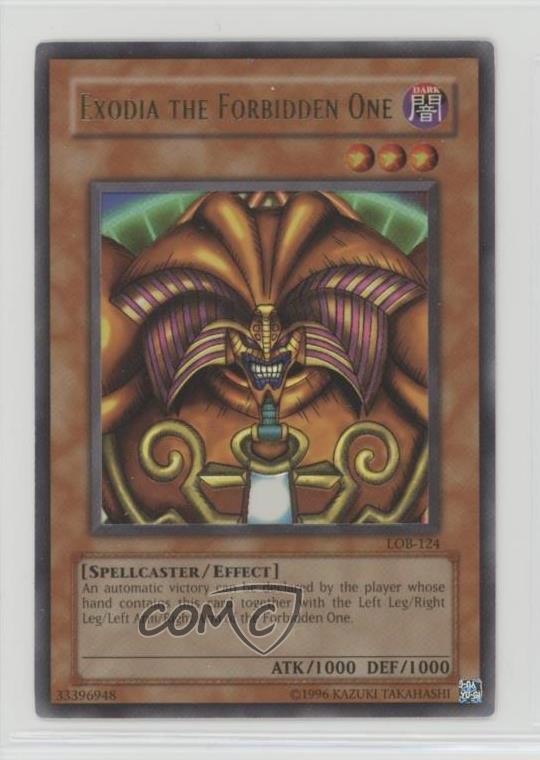 2002 Yu-Gi-Oh! Legend of Blue Eyes White Dragon - [Base] #LOB-124 Exodia the Forbidden One COMC Item: 76149479 - YuGiOh Card - Featuring Exodia the Forbidden One Search for more: 2002 Yu-Gi-Oh! Legend of Blue Eyes White Dragon Search for more: 2002 Yu-Gi-Oh! Legend of Blue Eyes White Dragon - [Base] View all of our Listings Auctions Buy It Now About Us Located in the beautiful Pacific Northwest, COMC (Check Out My Cards) is the world's largest consignment service for trading card singles. More than 10,000 people have used our consignment service to list over 50 million trading cards. Find out how we can help you consign your items on eBay by contacting us through eBay messaging. COMC -- "The Safe & Easy Way to Buy & Sell" Raw Condition for Modern Cards Unless otherwise noted, raw modern cards are listed in Near Mint-Mint condition or better. A NM-MT card appears to be Mint at first glance, but upon closer inspection, may exhibit some of the following: minor print defects (e.g. roller marks, print line, dimple), minor scratches, slight edge wear, and slight corner wear. Centering is clearly visible in the images provided and does not factor into our condition assessment. Raw Condition for Vintage Cards Unless otherwise noted, raw vintage cards are listed in Excellent condition or better. An EX card may exhibit some of the following: minor rounding of corners, surface wear, print defects, light scratches, and slight edge wear/chipping. Centering is clearly visible in the images provided and does not factor into our condition assessment. Domestic Shipping Combined shipping for multiple items is available. To receive combined shipping, please ensure all desired items are in your eBay shopping cart before proceeding to checkout. eBay limits orders to 40 items per order. We automatically combine multiple orders placed on the same day. If you place multiple orders on the same day, please contact us to request a refund of applicable shipping costs. Signature confirmation may be required on invoices over $400. All cards are protected and shipped securely. International Shipping COMC offers eBay's International Shipping (EIS) for international orders under $2,500* (see country exceptions below). All duties and import fees are paid at checkout; in the rare event that there are additional import fees upon delivery, these are borne by the buyer. EIS packages route through a shipping hub in Erlanger, KY before shipping to their final destination. Please note that EIS does not allow for combined shipments. The shipping rates are determined by eBay and cannot be adjusted. *Maximum sale price exceptions: Colombia, Kuwait ($2,000); Taiwan ($1,539); Chile, Costa Rica, Guatemala, Honduras, Trinidad and Tobago ($1,000); Antigua and Barbuda, Aruba, Belize, Dominica, Grenada, Philippines, Saint Kitts and Nevis, Saint Lucia, Montserrat, Turks and Caicos Islands ($500); Dominican Republic, El Salvador ($200). Please request a shipping quote through eBay messaging for orders that exceed the maximum sale price supported by eBay's International Shipping. You will be responsible for all duties and import fees for international orders shipped outside the EIS. All cards are protected and shipped securely. Payment COMC does not accept offers on our cards through our eBay storefront. COMC utilizes eBay’s managed payments system. If you are experiencing difficulties making a payment, please contact eBay for assistance. Return Policy Returns are only accepted on the rare occasion the item is not as described. If you are making a return, please initiate the return process through eBay so a mailing label can be provided for you. Prior to listing, our expert team carefully assessed this item to represent it accurately. Please review the description and high-definition images prior to purchasing to ensure this item meets your satisfaction. We welcome you to contact us if you have further questions about this item. Trust and Integrity COMC carefully assesses each item consigned to us to prevent fraudulent items from entering the marketplace. If you believe an item offered on COMC may be fraudulent, please contact us with details so we can investigate the issue. Items we determine are outside our supported items policy may be removed. Last Modified: 6/7/2025 4:04:31 AM PDT