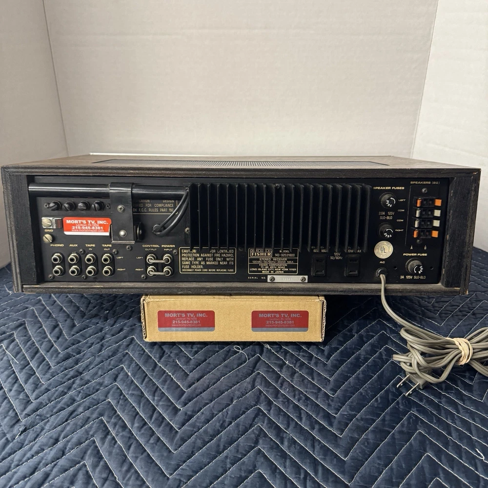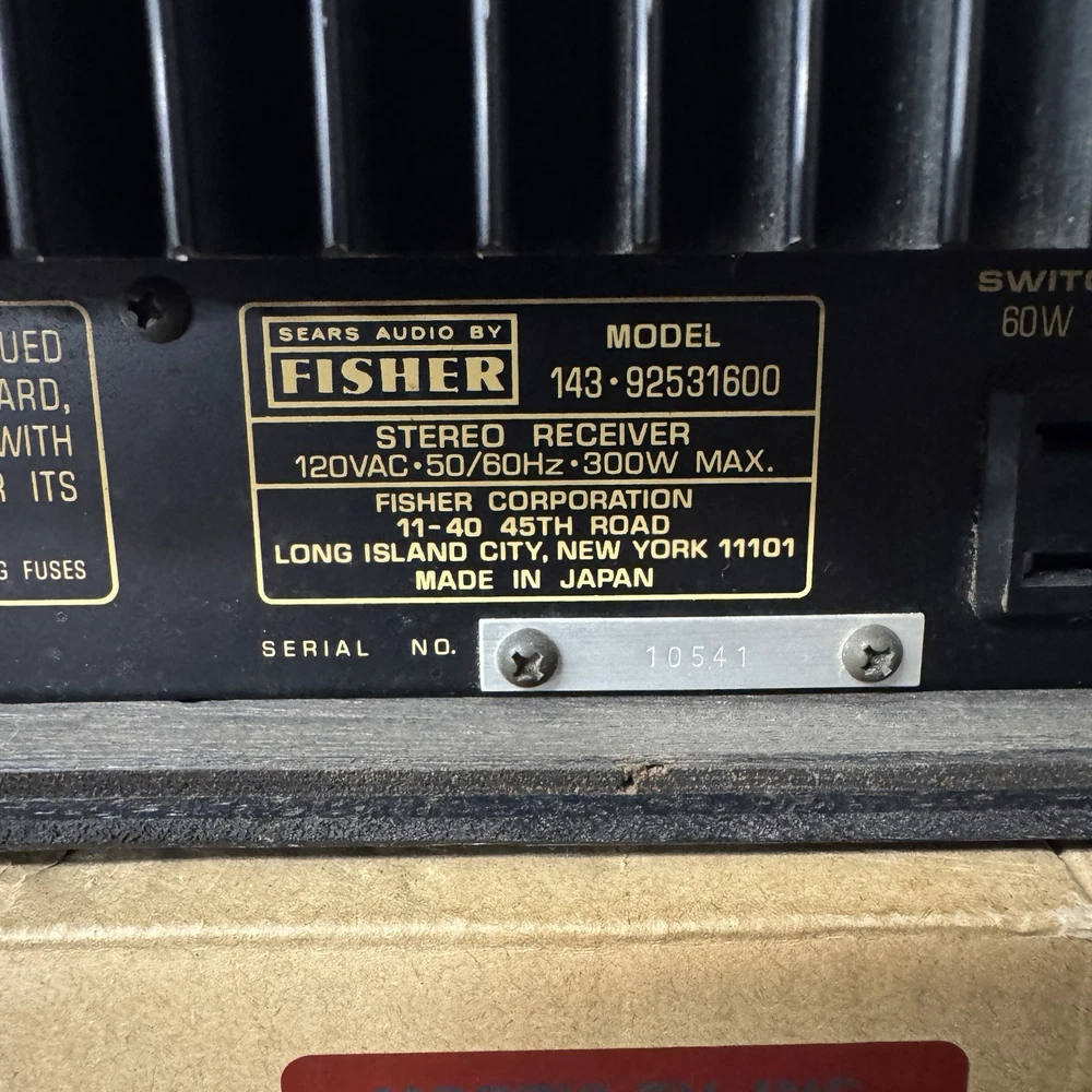 FISHER 143-92531600 VINTAGE AM/FM STEREO RECEIVER - SERVICED - CLEANED - TESTED. THIS VINTAGE STEREO RECEIVER WORKS AND SOUNDS GREAT AND IS IN EXCELLENT CONDITION INSIDE AND OUT. WE REPLACED ALL DEFECTIVE CAPACITORS AND ANY OTHER DEFECTIVE COMPONENTS. INSTALLED LED LAMPS. REPAIRED ALL POOR SOLDER CONNECTIONS. CLEANED ALL CONTROLS AND SWITCHES. ALIGNED THE FM CIRCUIT. (WE HAVE BEEN IN BUSINESS FOR OVER 60 YEARS REPAIRING VINTAGE AUDIO EQUIPMENT.) IF YOU HAVE ANY CONCERNS, PLEASE CONTACT US PRIOR TO YOUR PURCHASE.