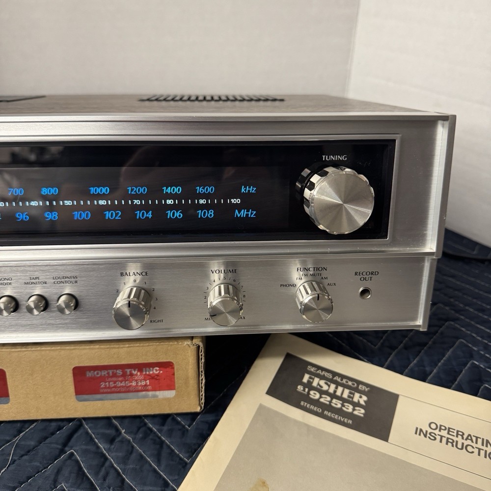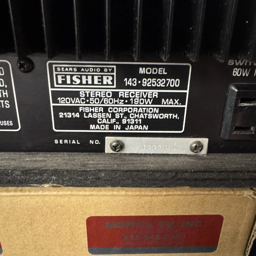 FISHER 143-92532700 VINTAGE AM/FM STEREO RECEIVER - SERVICED - CLEANED - TESTED. WITH OWNERS MANUAL. THIS VINTAGE STEREO RECEIVER WORKS AND SOUNDS GREAT AND IS IN EXCELLENT CONDITION INSIDE AND OUT. WE REPLACED ALL DEFECTIVE CAPACITORS AND ANY OTHER DEFECTIVE COMPONENTS. INSTALLED LED LAMPS. REPAIRED ALL POOR SOLDER CONNECTIONS. CLEANED ALL CONTROLS AND SWITCHES. ALIGNED THE FM CIRCUIT. (WE HAVE BEEN IN BUSINESS FOR OVER 60 YEARS REPAIRING VINTAGE AUDIO EQUIPMENT.) IF YOU HAVE ANY CONCERNS, PLEASE CONTACT US PRIOR TO YOUR PURCHASE.