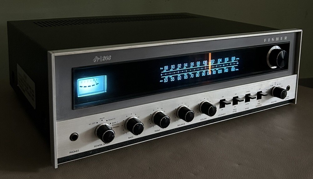 FISHER 203 STEREO RECEIVER. USED. STANDARD SHIP. This receiver has been serviced/tested LEDS added and is sounding great. It shows some signs of wear and the (FM stereo lamp is out). Really nice little receiver by Fisher. Pro packaged, insured and includes tracking. No PO Boxes. Thank you.