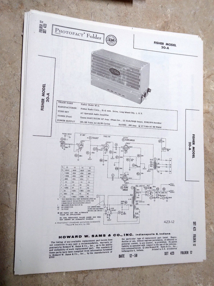 Original vintage SAMS Photofact Folder 423/12, not a disappointing inferior quality copy. Minty new condition, never used, spine nice and tight fold. Paper so slightly toned, straight edges, square corners. No writing, no notes in any of my SAMS, they are new old stock. 2 pages of schematic, parts list/locator, alignment info,.... Shipped flat in manila envelope with stiffener to help keep flat. I usually ship the next day.