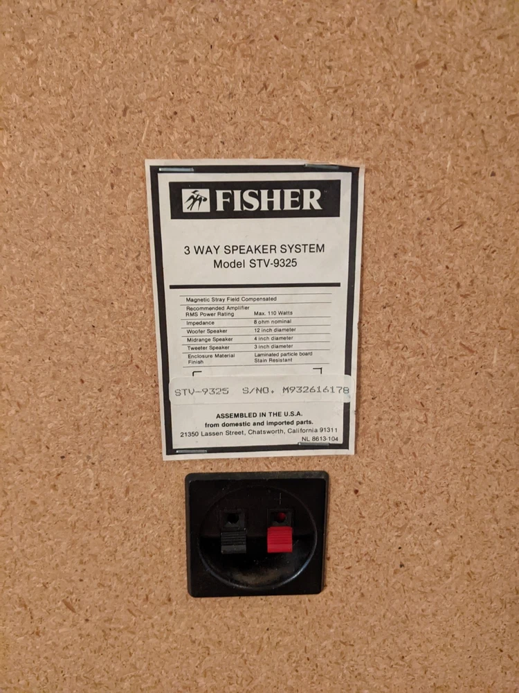 Experience classic retro Fisher sound with these vintage 3-way floor speakers. The STV-9325 model boasts a unique rarity and collectible value, making it a must-have for any home audio enthusiast. Made in the United States, these speakers feature a 12-inch woofer, midrange, and tweeter, with a total power of 110 watts. The Fisher brand is known for its high-quality sound and these speakers are no exception. They are perfect for anyone looking to add a vintage touch to their home audio system. Don't miss out on the opportunity to own a piece of audio history with these rare and unique speakers. Good condition. Measures 40 inch high X 14 inch wide X 8.5 inch deep. See Pictures for content and conditions. Tested. Works Local pickup only.