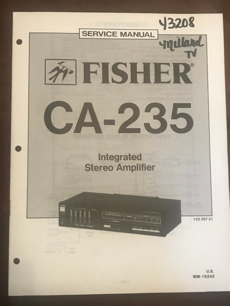 This is for an original FISHER service MANUAL, includes REPAIR INFO, part numbers and SCHEMATIC DIAGRAMS MODEL - CA-235 INTEGRATED STEREO AMPLIFIER Manual is in VERY GOOD CONDITION, Doesn't look like it was ever used. WE HAVE NO STEREO UNITS, OR AMPLIFIERS LEFT!!! THESE ARE ALL THE FISHER MANUALS WE HAVE LEFT. IF YOU DON'T SEE IT i DON'T HAVE IT. We closed out our electronic Service Shop a few years ago and are selling off the manuals we have left, some of which are manuals we acquired from other service centers that have closed.. Please check our other auctions for other closeout clearance items. I will be listing them as quick as I can but will probably take several months to list everything we have left. Item will be shipped in an envelope. Shipping is FREE in the 48 States only. $14.02 I nternational shipping. PLEASE check our other auctions. We Give free shipping in the U.S. for each additional manual purchased. Item will be shipped USPS economic shipping and may take 1-9 days. If you want faster shipping please let me know. ITEM IS SOLD "AS IS"! Thank You for the bid, and GOD BLESS THE U.S.A .