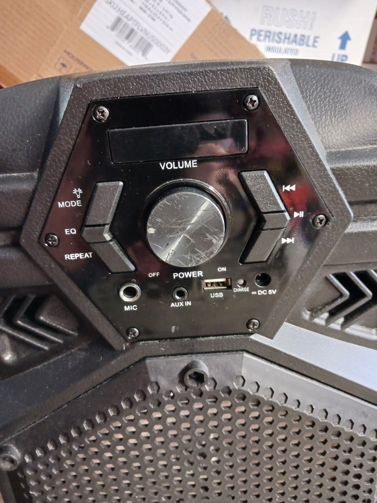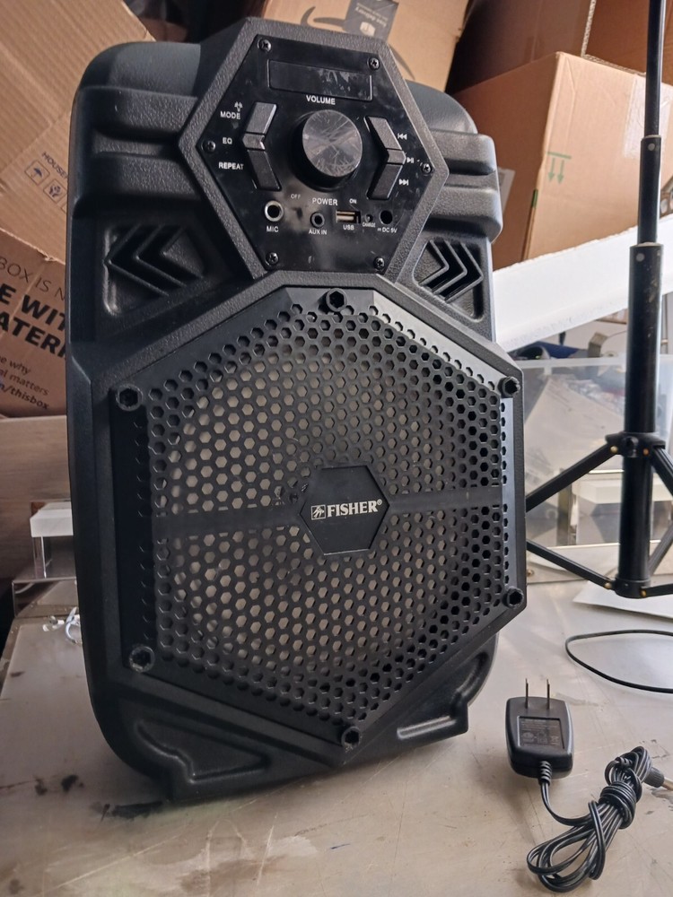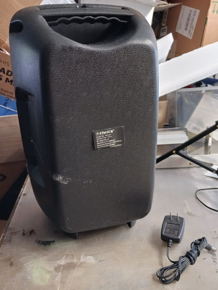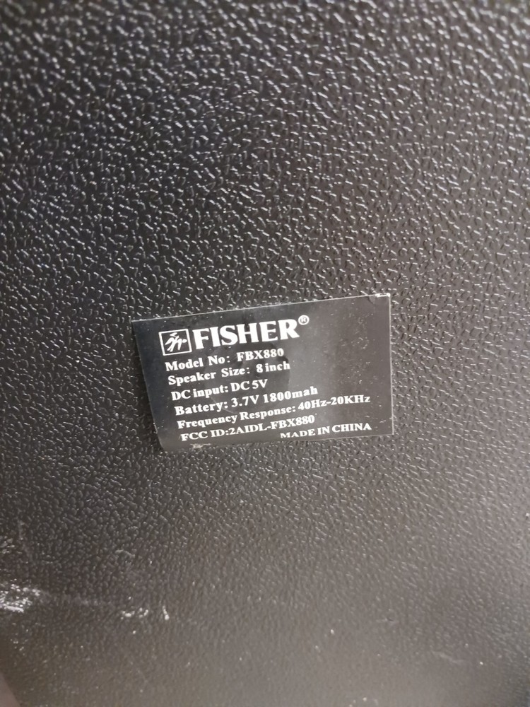 FISHER FBX880 Portable Wireless Speaker With Disco Lights. NOT WORKING. I don't know why. For parts or repair. Power cord included....