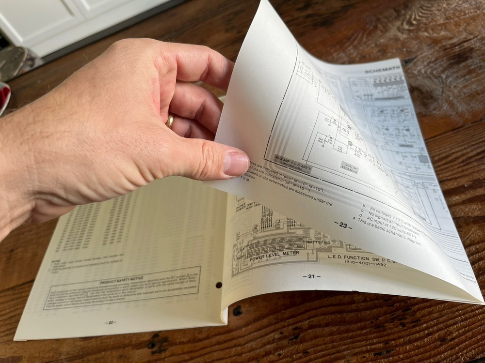 Stereo amplifier service manual was as described, i.e., original, "like new" (unused), and in excellent condition. Seller enclosed the manual in a plastic sleeve to protect against wetness, and used cardboard backings to protect it against folding during transit. Many thanks!
