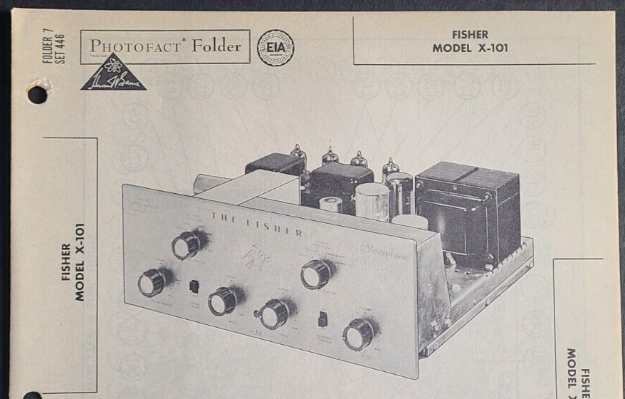 THIS IS AN ORIGINAL SAMS PHOTOFACT (REPAIR INFO) FOR FISHER MODEL X-101 AMPLIFIERS. CONTAINS SCHEMATIC(S), INTERNAL VIEW(S), PARTS LIST AND DESCRIPTIONS. PAGES: 8 PAGES OF DATA THIS IS WHAT YOU WILL NEED IF YOU EVER NEED TO MAKE REPAIRS. IT IS IN VERY GOOD CONDITION. IF YOU WOULD LIKE TRACKING AND/OR ADDITIONAL PROTECTION IN THE PACKAGING PLEASE SELECT MEDIA MAIL RATHER THAN FIRST CLASS.