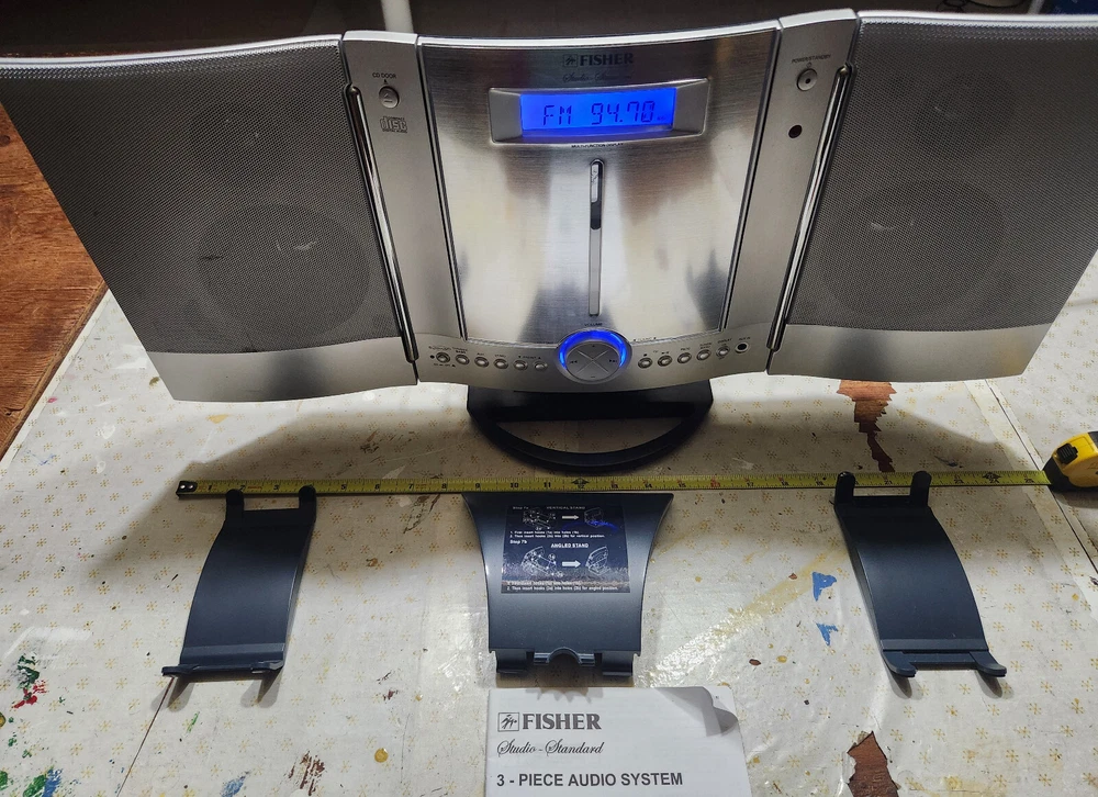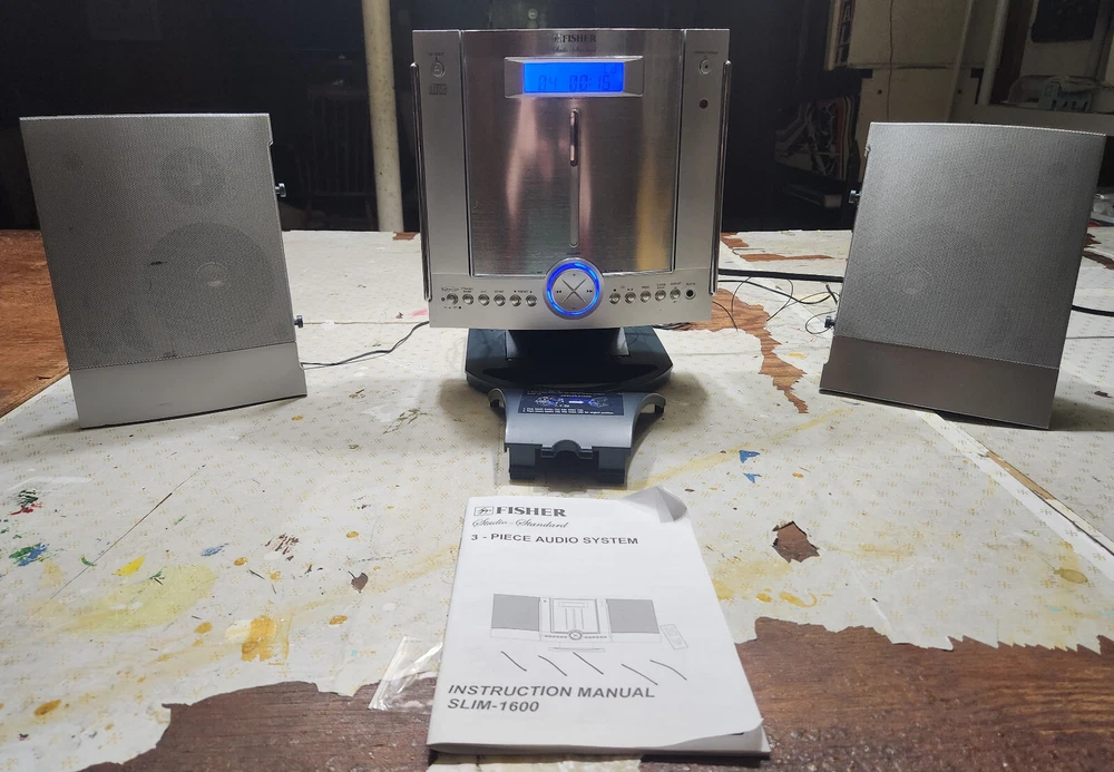 FISHER SLIM-1600 SLIM-PROFILE AUDIO SYSTEM CD, AM/FM STEREO RADIO WALL HANGING Good condition, everything works.