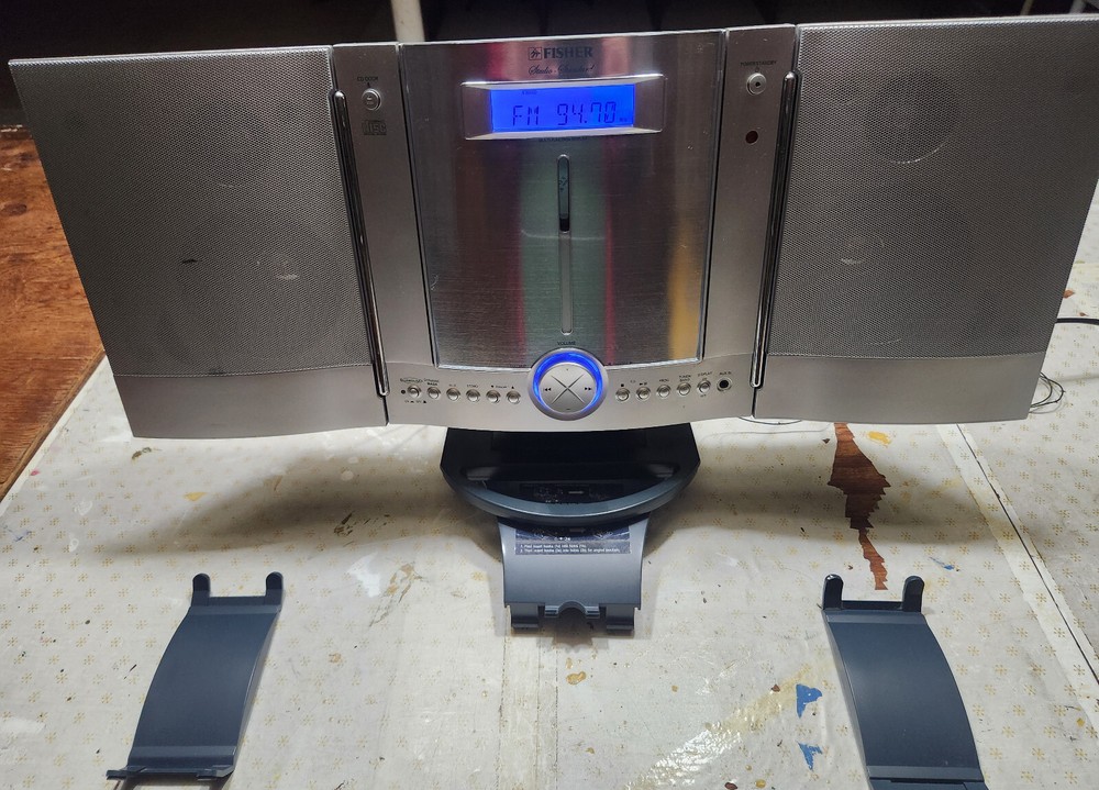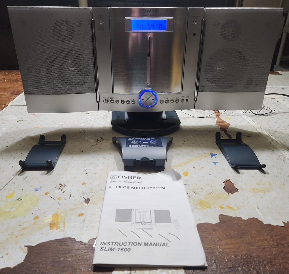 FISHER SLIM-1600 SLIM-PROFILE AUDIO SYSTEM CD, AM/FM STEREO RADIO WALL HANGING Good condition, everything works....
