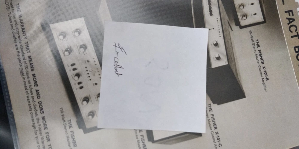 1963 FISHER STEREO AMPLIFIERS Technical Fact Booklet - 4pages Features models: X-100-B X-101-C X-202-S X-1000 Original document Comes form a former missile engineer for the US Air Force. Was employed under this position during 1950's and 1960's, may have continued on afterwards, all the paperwork I have are from that period. Superb condition . Well cared for. pages are clean and crisp. Looks like it could have been printed recently not 60 years ago.