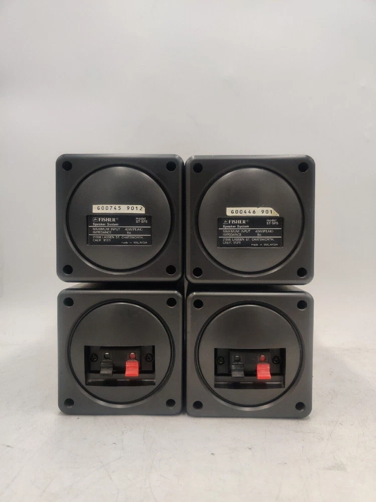 Enhance your audio experience with the FISHER ST-SF5 HI-FI SPEAKER SYSTEM. This vintage speaker system is designed to deliver high-quality sound with its 8OHM 40W PIVOTING SURROUND / MAIN FRONTS speakers. Its Fisher Brand ensures the reliability and durability of the product as it is made in Malaysia. The Unit Type of this speaker system is a Unit, and it comes with n/a Unit Quantity. It is perfect for vintage audio and video enthusiasts, as it falls under the categories of Consumer Electronics, Vintage Electronics, and Vintage Speakers. The California Prop 65 Warning is not applicable to this product. Purchase this speaker system and enjoy high-quality sound without compromising on style.Condition Used with signs of normal usage but overall in great shape and fully tested. Due to weight and dimensions this package can not be send to Alaska, Puerto Rico, Hawaii, APO or PO box address. Listing and template services provided by inkFrog
