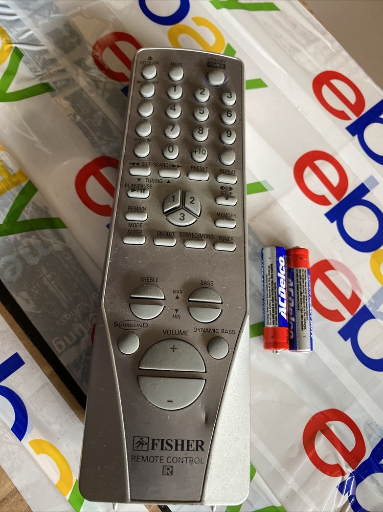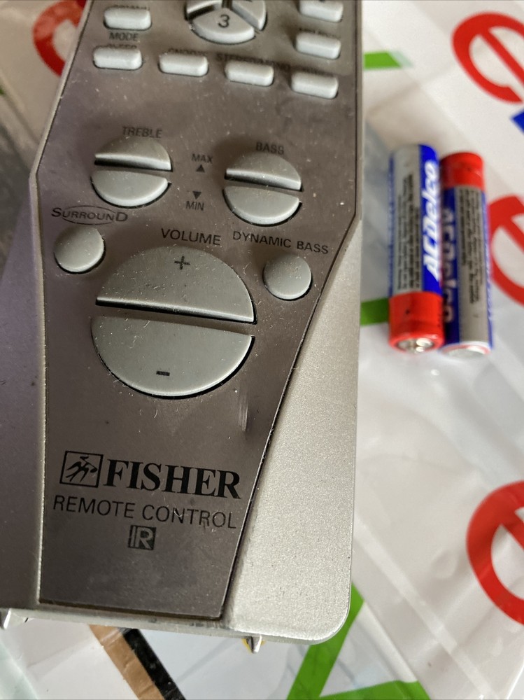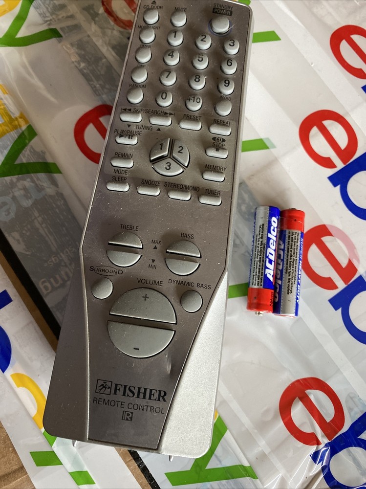 As pictured the unit is tested it shows normal signs of a used unit also a heavy ding on the bottom part look at pictures for reference FISHER Surround Audio System Remote Control New Batteries Free Shipping. Condition is "Used". Shipped with USPS First Class.