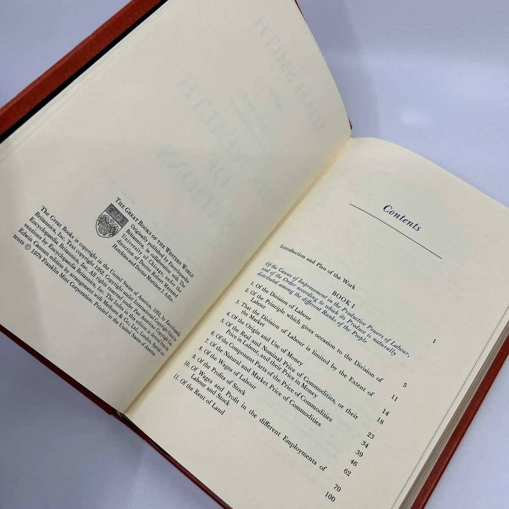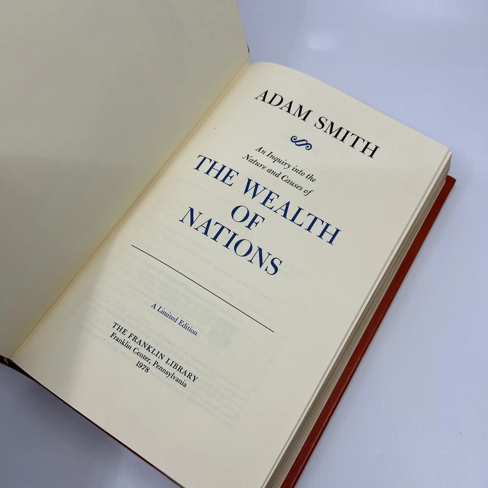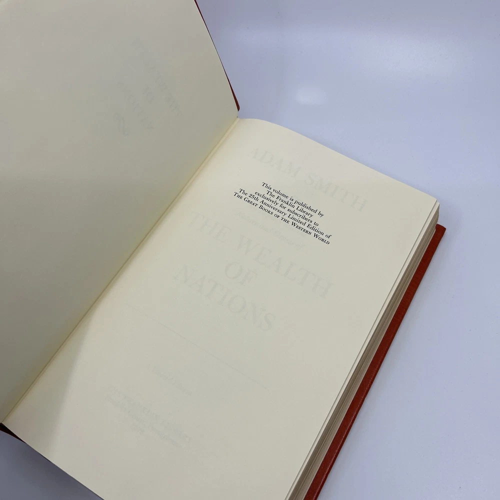 >>> GET IT NOW & ADD IT TO YOUR LIBRARY TODAY! <<< Leather-bound Franklin Library collector's edition of An Inquiry into the Nature and Causes of the Wealth of Nations by Adam Smith - commonly known as The Wealth of Nations Published as part of The 25th Anniversary Limited Edition of The Great Books of the Western World Condition – Very Good; no attached bookplate/no embossed seal/no signatures or marking s; some shelf wear/marks/scratches/rubbing/spots/flaking to page gilt; some shelf wear/marks/rubbing/bumps/discoloration to leather covers including sunning to spine ; may have some dust from storage; please see all photos for details - photos are part of description; from an adult only smoke & pet free household; owl not included Shipping – boxed USPS Media Mail or Priority Mail (selectable at checkout); no international shipping (please do not ask) Payment – within two days from the listing's end (Best Offer acceptance) unless prior arrangements have been made No Returns/Sold 'As Is' – please contact me if you have any additional questions/issues or with requests for additional pictures >>> GET IT NOW & ADD IT TO YOUR LIBRARY TODAY! <<< *The only true First Editions (1 st Editions) from Easton Press you can be 100% certain about are books with “Signed First Edition " gilt-stamped on the leather spine or “Signed First Edition " printed on the title page and/or on the signature page. It is impossible to tell if any other Easton Press book is a first edition or first printing. Please keep that in mind and if not sure ask sellers for photos proving their claim. **Easton Press does not provide the actual print date in their books. For "Year Printed" the copyright date is listed (oftentimes from the original Heritage Press editions, rights to which were sold to Easton Press), which may or may not indicate an accurate range for manufacture of the book. ***Please note that Easton Press’s term Collector’s Edition is not synonymous with Limited Edition (LE). The only true Limited Editions from Easton Press are copies hand-numbered on the limitation page (i.e. ‘Number 1 of 1200’ or ‘This edition is strictly limited to a quantity of 1200 copies of which this is number 1’). Please keep that in mind and if not sure ask sellers to prove their claim.