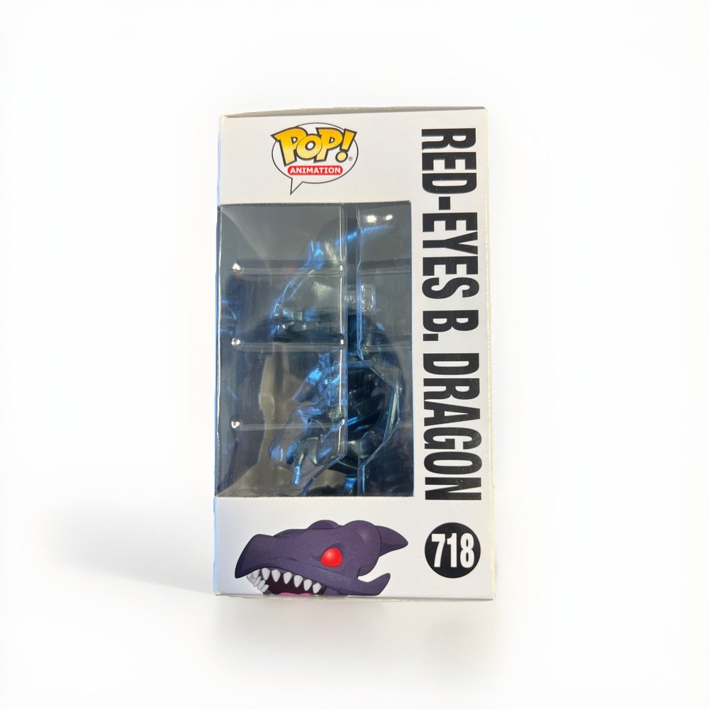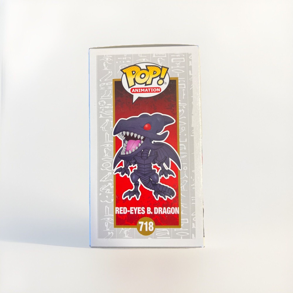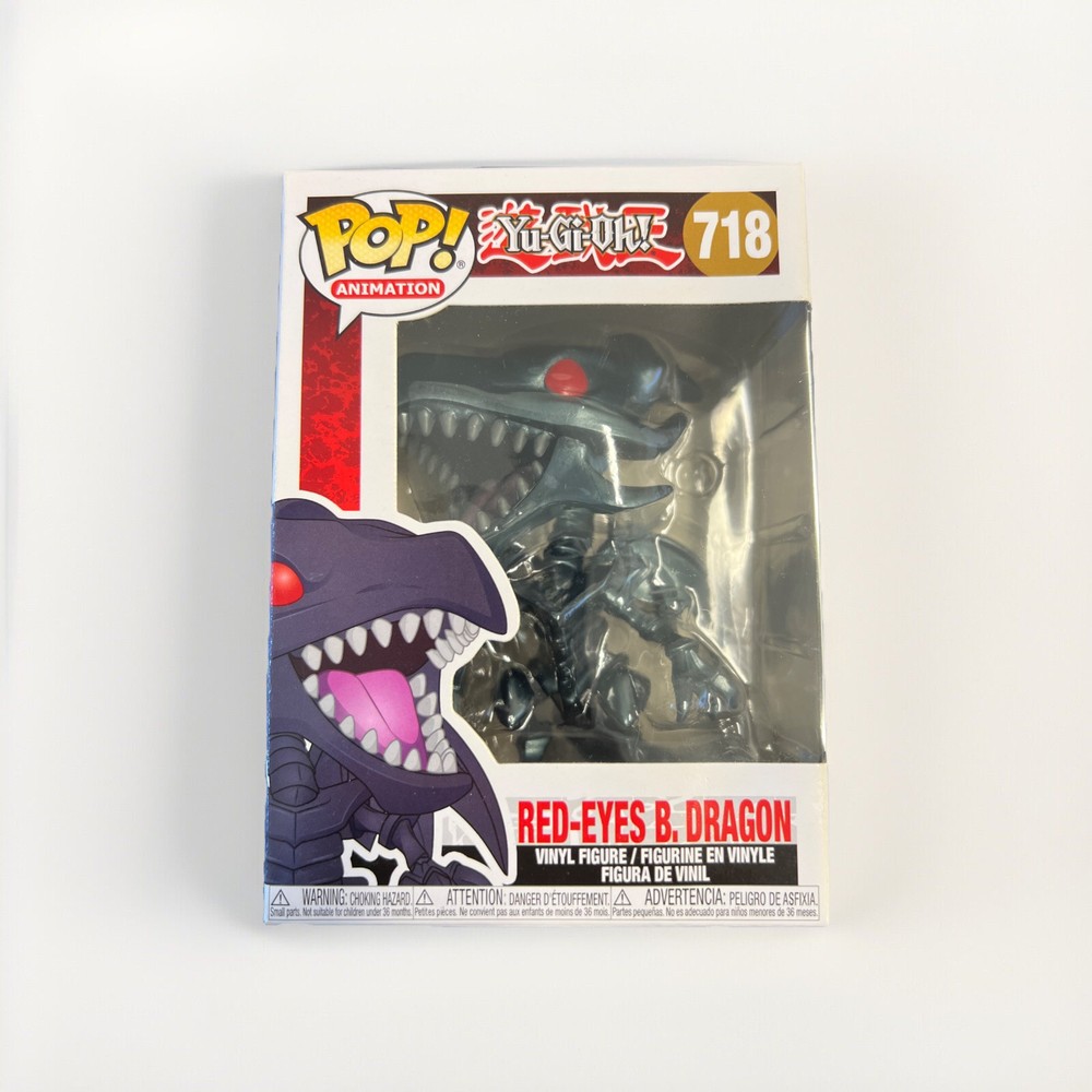 This Funko Pop vinyl figure features the character Red-Eyes Black Dragon from the Yu-Gi-Oh! series. It is part of the Yu-Gi-Oh! Series 2 collection and comes in its original packaging. The figure is black in color and suitable for ages 4 and up. It is an exclusive release with box number 718 and is a part of the Pop! Vinyl product line.
