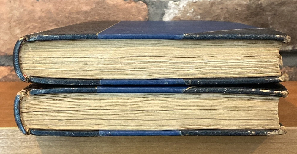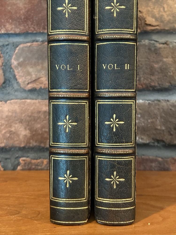 Both are in very nice condition with nice partial leather bindings. The frond cover of volume 1, while in great condition, is detached from the book and needs repair. Overall this is a great first edition set! The books measure about 9” tall and 5” wide. Please judge for yourself from the photos and feel free to contact with any questions. Shipping policy: Flat rate shipping charge to the lower 48 US states. Alaska/Hawaii may require additional shipping charges. If from Alaska or Hawaii, please contact ahead of any purchases. All international shipments are handled by the eBay Global Shipping Program (GSP).