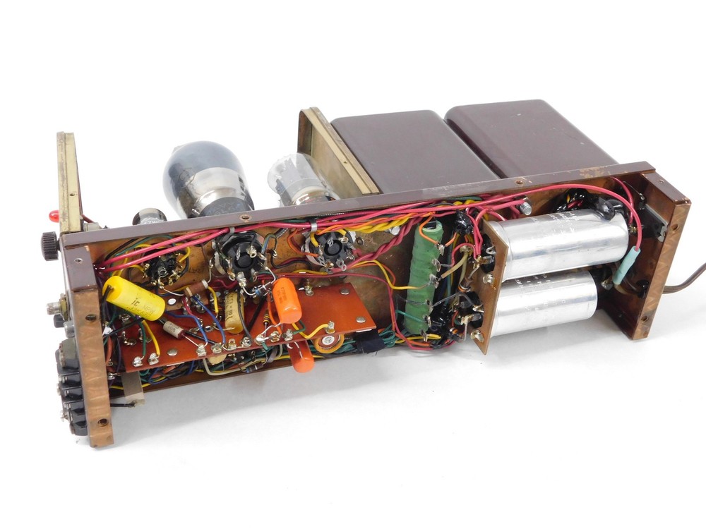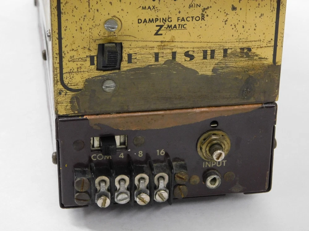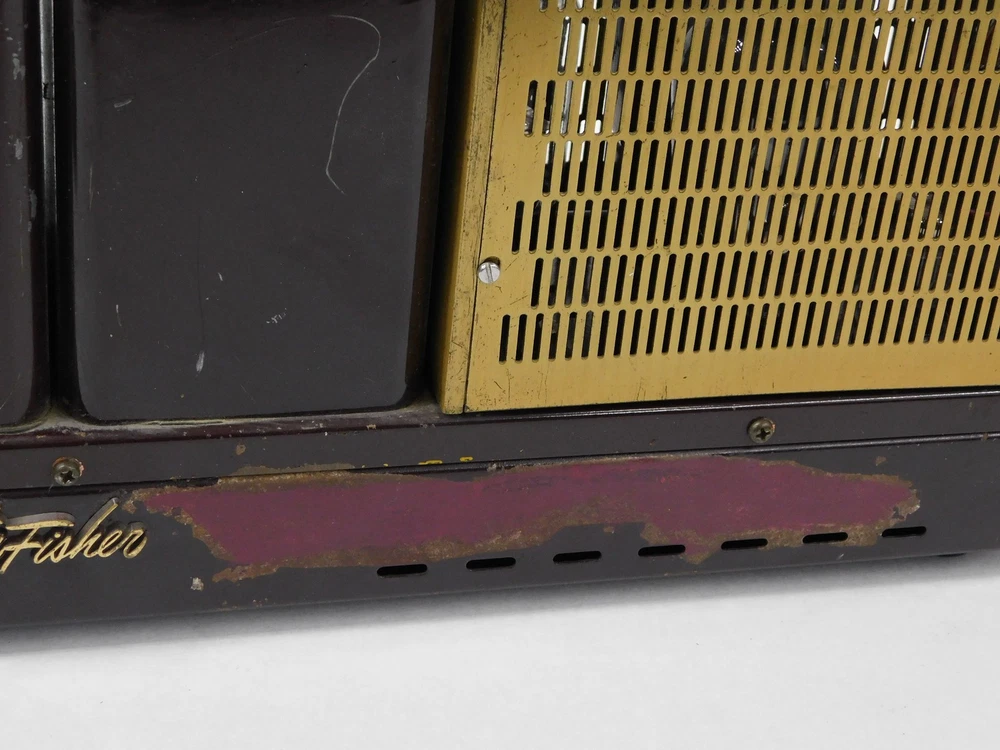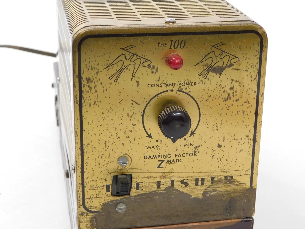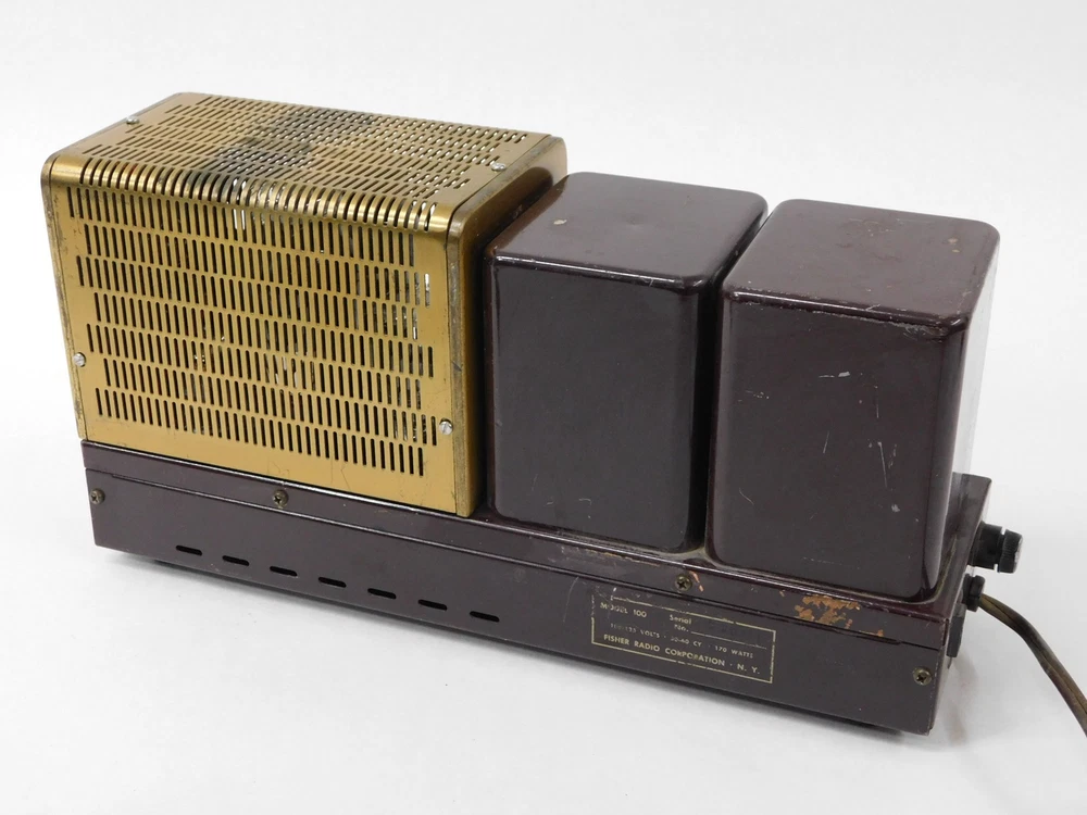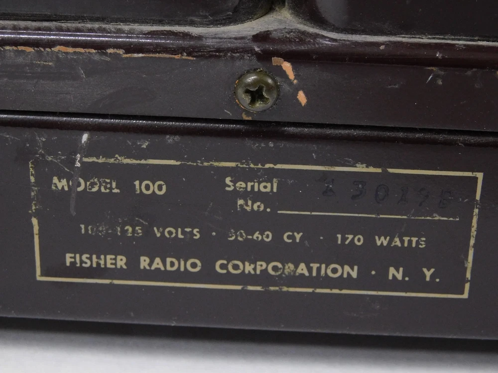 This Fisher 100 amplifier (serial number 13012B) isn't going to win any beauty contests. The paint is original, but has quite a few scuffs and scratches. Likewise, the gold colored panel shows a lot of wear. There's one very small dent on top of a transformer. The good news is that everything (including the cage) is straight without any deep dents or scratches and will make a great candidate for cosmetic restoration. The amp was slowly brought up on a Variac and sounds good! The tubes are mismatched vintage American tubes by GE and Sylvania. You'll notice that a few capacitors have been replaced, but I don't know who did that work or when it was done. There are still plenty more that are original and as with any piece of vintage stereo equipment, it's a really good idea to have to totally recapped before putting it into service. Also, please note that we have not tested the tubes and cannot guarantee their condition. SHIPPING/PACKAGING: All orders ship within one business day. We use only premium packaging materials and have invested in a $5000 foam-in-place system. The bottom line is this... you'll receive your item on time and in perfect condition regardless of how big, heavy, or delicate your item may be! Your item will ship with one of three carriers: USPS, FedEx, or UPS. If you have a preference regarding which carrier is used, please let us know before completing the purchase. Lastly, please note that I can no longer accommodate requests to ship at a later date. WHAT'S INCLUDED IN THE SALE: You will only receive what is shown in the photographs. If you do not see it in the photos, it is likely not included in the sale. That includes manuals, packaging, power cords, etc. If you have questions about what is included, please ask before making a purchase and we'll be happy to clarify. RETURNS: This item includes a 30-day return policy! However, please note that it is your responsibility to ensure we receive the item in good condition. If a returned item is damaged or incomplete in any way, we reserve the right to issue a partial refund. ABOUT US: Our company, Ham & HiFi, is located in Sparks, NV. Everyone in the shop is a ham operator and some have been licensed for more than 50 years. We've been selling used equipment on eBay for over ten years, and in that time we've sold well over 56,000 items and have maintained a 100% positive feedback rating. We list new items all the time, so click here to visit our eBay Store and see the latest additions to our inventory!