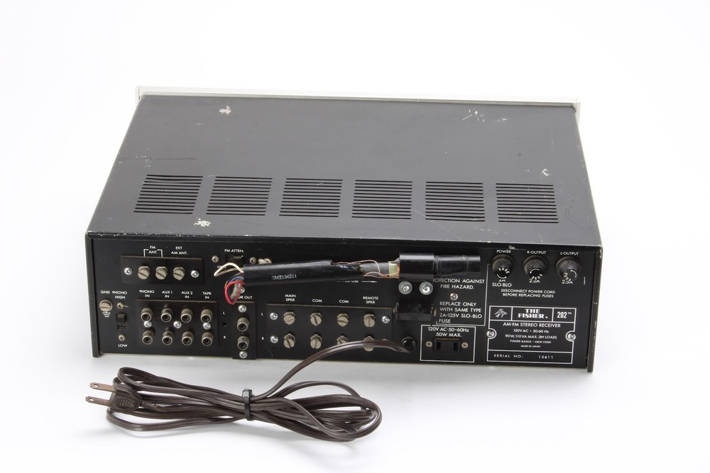 Description This unit has been tested and functional. Cosmetically in fair/poor condition showing moderate to heavier scuffs / scratches / blemishes from previous use, as well as there is a major damage to antenna, and the wires are partially exposed. Includes AM/FM Stereo Receiver as pictured. No additional items or accessories are included. Photos are of the actual unit for sale. Inventory is on hand and ready to ship. Please feel free to message us with any questions you may have. Specifics Manufacturer Fisher Model Number 202 SKU 19-21229 Terms and Conditions Includes This listing includes only what is pictured or described. Please contact us for additional details. Many of our items take a standard PC style power cable (NEMA 5-15P to IEC-320-C13) which unless pictured is not included. We can include one if requested at the time of checkout free of charge. If unsure, please do not hesitate message us and we will be happy to confirm for you what is included with your purchase. If a custom power cord or AC adapter is required for the item, it is only included if pictured or described above. Shipping Details Shipping originates from zip code 95742. Unless otherwise specified, orders will be shipped by Fedex, USPS, GSO, or UPS at the seller’s discretion in order to ensure delivery by the estimated delivery date. Orders received by 8am PST are shipped same day, all other orders are shipped within 1 business day. Most listings offer Standard, Expedited, and Overnight shipping options. If these shipping options do not meet your needs, please contact us to make arrangements. We gladly ship international, please contact us for a quote if no shipping option is provided. All items are carefully packed with brand new packaging materials to ensure your item arrives on time and without damage. International Buyers Import duties, taxes, and charges are not included in the item price or shipping cost. These charges are the buyer's responsibility. Please check with your country's customs office to determine with these additional costs will be prior to bidding or buying. Customs fees are normally charged by the shipping company or collected when you pick the item up. These fees are not additional shipping charges. We will not under-value merchandise or mark the item as a gift on customs forms. Doing so is against US and international law. Privacy Rest assured your information will not be given, sold, rented or loaned to any third party.