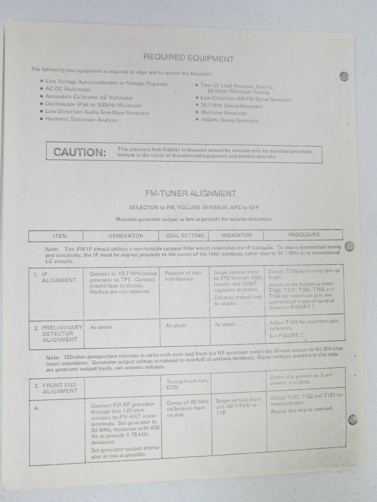 Stereo receiver user manual was as described - original, little used, and in excellent condition. Manual was shipped quickly, and was packaged in plastic to prevent wetness, protected from folding using cardboard, and enclosed in a vinyl mailer. Excellent transaction!