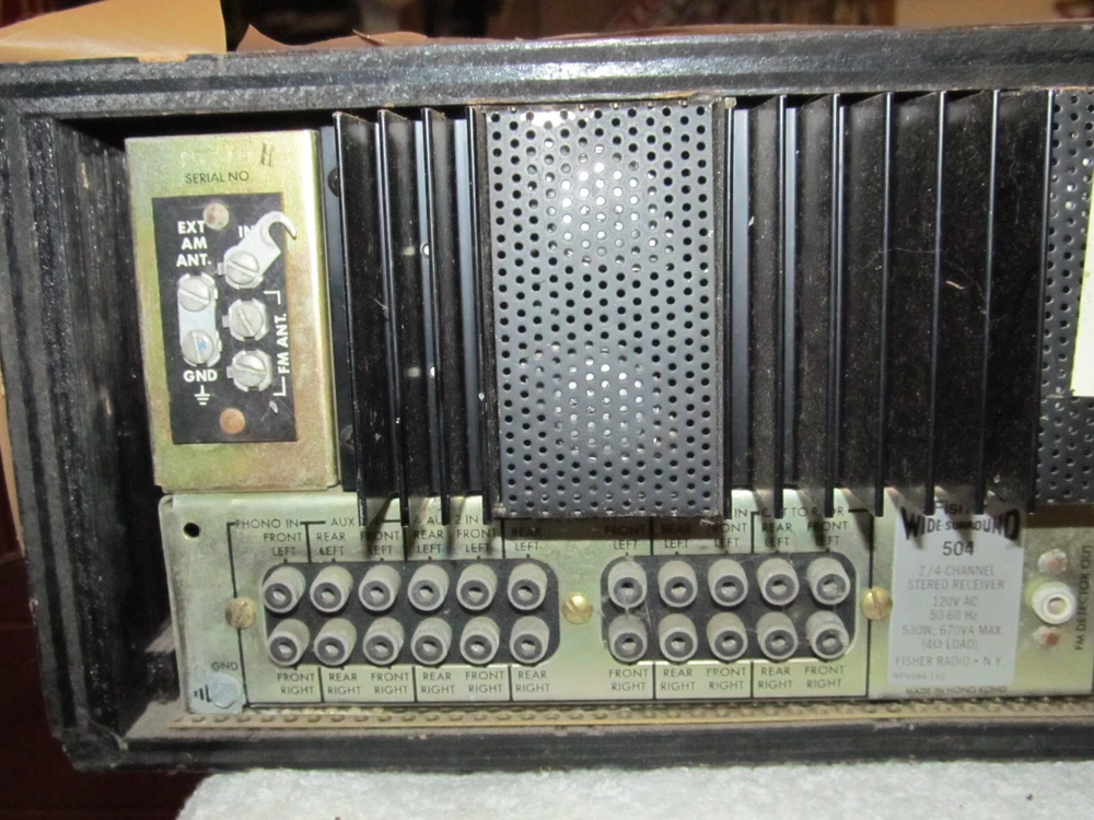 Fisher 504 Stereo Receiver, HUGE, NEEDS SERVICE, PICK UP HERE IN LOWELL INDIANA Face is dirty but in good condition. Plastic veneer is peeling. Wood is good. Had an ac hum so I shut it off. Will need caps at least. Sold as-is as shown not working for parts or repair. THIS ITEM IS FOR PICK UP ONLY HERE IN LOWELL, IN, 46356. WE WILL BE ABLE TO ASSIST IN LOADING. As with all used/previously owned/vintage electronics, this item is available for purchase as is, where is for parts or repair, due to age/buyer mishandling/fraud/lack of proper operational knowledge/and above all we are watching out for the part swappers. If you happen to be a local buyer, you are more than welcome to contact us to stop by and audition the item prior to buying. All Sales Are Final. PLEASE NOTE ALL FAULTS SHOWN IN PICTURES ARE CONSIDERED PART OF THE DESCRIPTION. ALL ITEMS ARE EXPERTLY PACKED TO ARRIVE IN GOOD ORDER. The items we sell are vintage items. Since all of our items come from local estates or auctions, we offer no warranty, either expressed or implied. We will tell you if an item has been tested, to what degree it has been tested and what functions work or don't work. All items are sold AS IS/WHERE IS. All items are available for local pick up at no cost. We can work with just about any schedule WE NEED CONTACT WITHIN 48 HOURS WITH PAYMENT INTENTIONS & Payment is expected within 4 days of invoice. We do file with eBay if payment is not received within 4 days. If you need additional time, please let us know. We accept PayPal. Please inquire for more info. ALL INDIANA SALES & ITEMS PICKED UP & PAID FOR HERE IN INDIANA ARE SUBJECT TO 7% INDIANA SALES TAX.