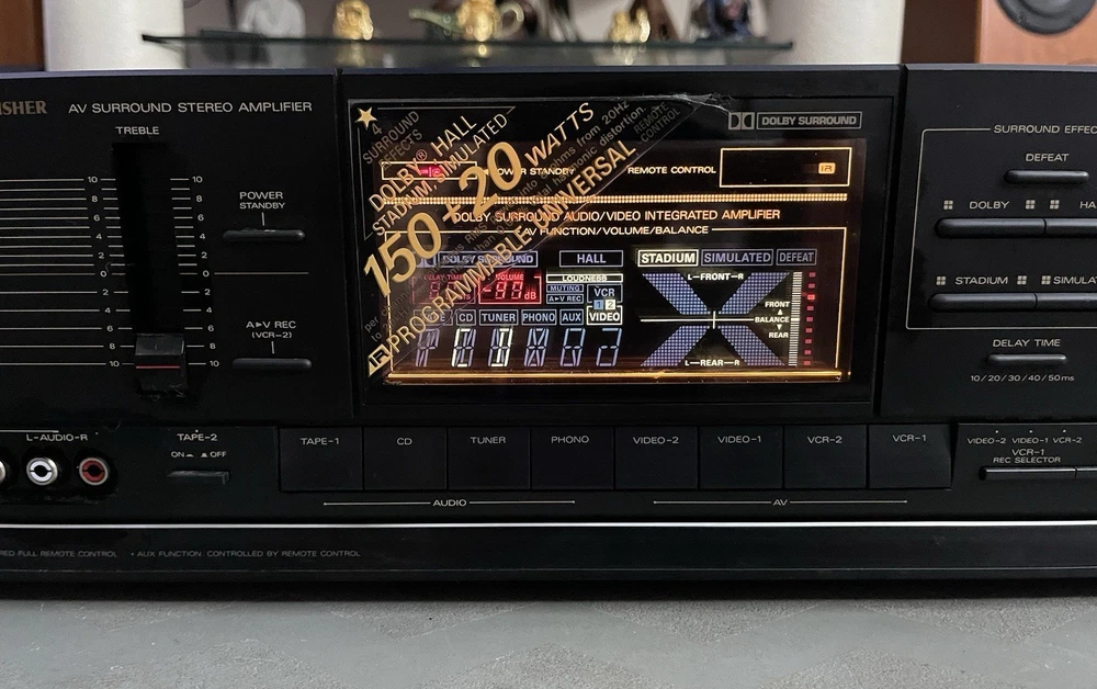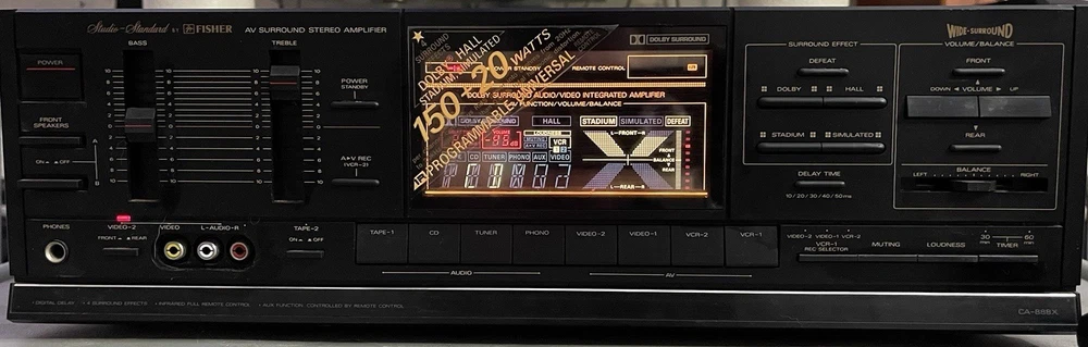 Beautiful, Elegant, Dynamic, Sounds high end; This amp has never been hit, never dropped, and never been broken. The entire lighting system still shines and all turn on. You can connect up to 6 baffles to the theater system. Cosmetically I give it a C; ,, This Fisher 888X series amplifier, I have looked for it on various hi-fi sales walls and I can't find it, I don't think there are many for sale. No remote control . . The entire operating system of the Amplifier works very well and has a powerful power. ..I'm noticing that it seems the right channel sounds a little quieter than the left channel. I'm not an expert but it seems the balance control is dirty or I don't know what it is. Well, Enjoy it before and after buying it. Thank you very much. God bless you.
