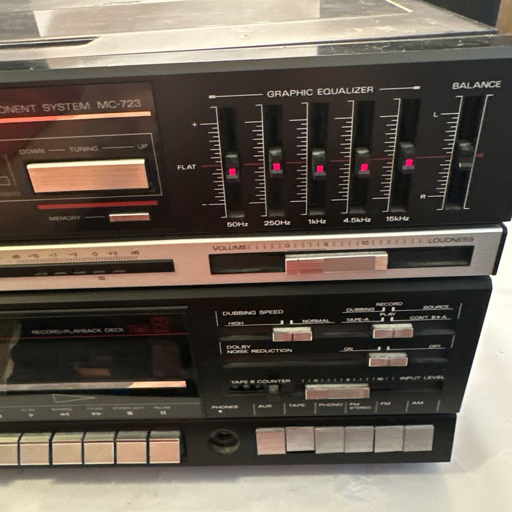Great vintage electronic! Record player works well! The needle seems fine, if it starts to go Amazon have plenty. Tape deck 2 seems to be working great but tape deck 1 looks like the belt fell off of it so that is the only thing not functioning I have a picture of the belt in the 2nd tape deck and if you look back at the first it is missing. The radio works well. NO SPEAKERS INCLUDED. Please let me know if you have any other questions. I will be happy to do my best in answering them.