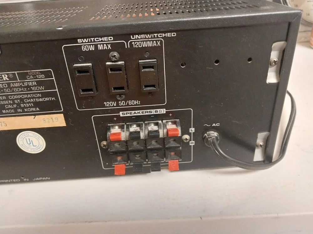 This amp is in great condition. I plugged it in, and it lights up. The needed moves. I can do no further testing. I have nothing to plug it into. Because of the issue I just mentioned. I'm listing it for parts or to repair only. No returns. Thank you for looking.