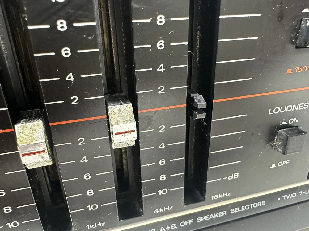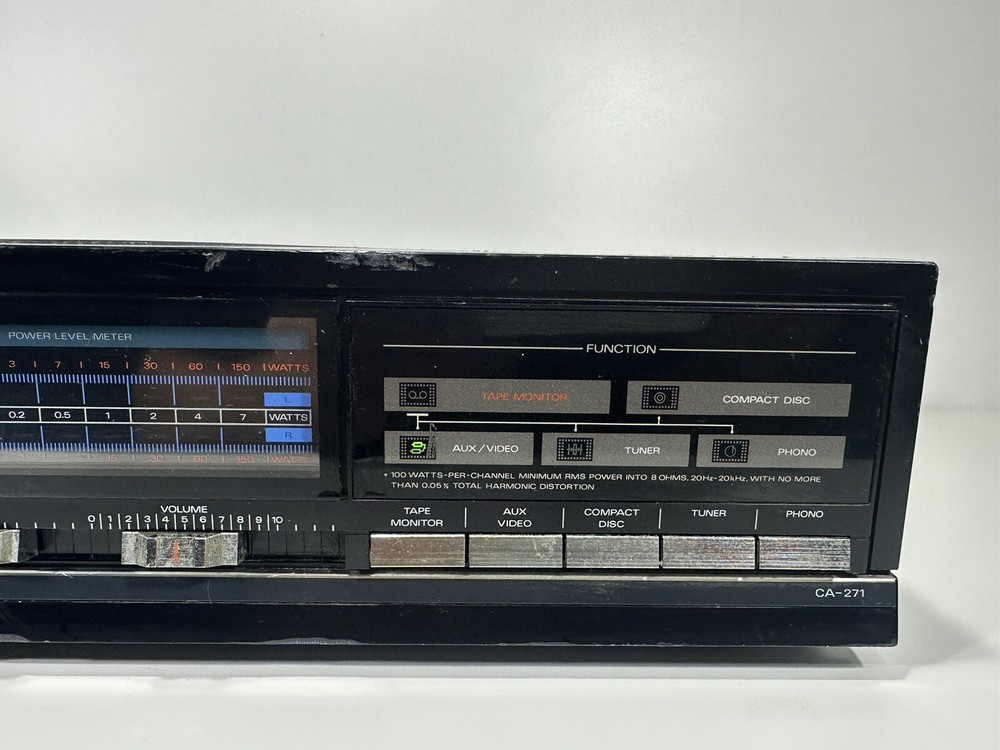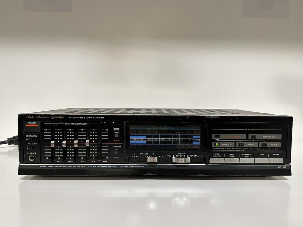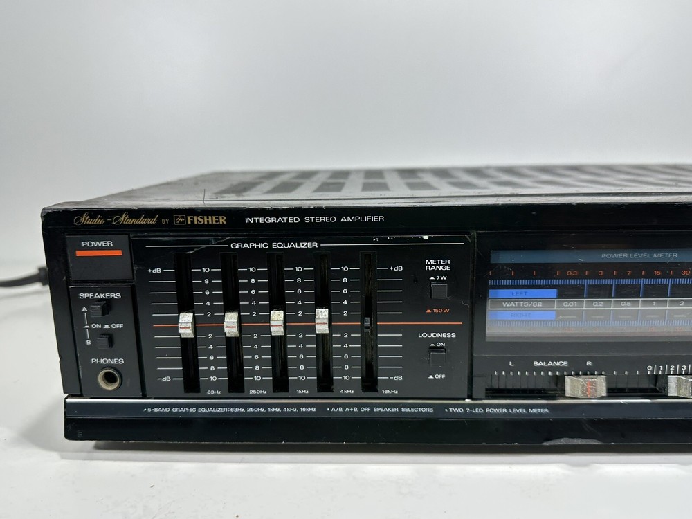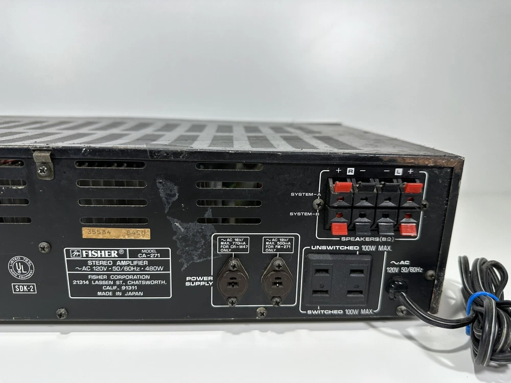 Fisher CA-271 ~ Stereo Integrated Amplifier ~ Partially Work / Parts / Repair The unit powers on without any issues on the left channel output for both Speaker A and Speaker B. However, when the right channel is connected, it produces sparks and fails to work. Additionally, it is missing a sliding key of EQ. This item is being sold AS-IS for parts or repair. ___________________________________________________________________________ Please take advantage of the zoom feature on the photos to judge cosmetics for yourself. What you see in the photos is what exactly you receive. If it's not pictured it's not included . For orders with the Free Shipping, we reserve the right to use the most cost-effective means of shipping. In-store pickup only available by prior arrangement ONLY. Shipping : We ship all items within 1 business days of receiving your cleared payment. (Excluding weekends and holidays) Additional shipping fees will apply for all Alaska, Hawaii and U.S. Territories (Guam, Puerto Rico, Virgin Islands and etc.) shipments. To ship a large item to PO boxes, APO or AFO zip code also will be charged additional shipping fees. If items are damaged in transit, a claim should be filed with the carrier. We can file the claim if you wish. Please contact us immediately if this happens, as we cannot be responsible for how packages are handled during shipping. Please save box and all packaging material for carrier inspection. Disclaimer: We include these additional lines for our mutual protection, but if you check our feedback, you can trust that we go out of our way to ensure the satisfaction of our buyers, as our business will only be as good as our reputation. Please contact us immediately if there is a problem, we can't solve it if we are not made aware of it. Please don't let us know by leaving bad feedback if there's an error, please give us the chance to make it right. All items we list on eBay are in good working condition upon listing, unless otherwise noted. If we are not sure, we say that, so please don't expect us to take back an item if it has not been fully tested. Although it worked when we tested it, there are no warranties offered or implied. Make sure you know what you are buying. We do not guarantee compatibility with your software and/or hardware and/or electronic equipment, nor can we be held responsible for buyer's remorse. We want you to get what you want, so please understand YOUR RISKS and ask all questions BEFORE you purchase. Not all equipment can be tested for 100% functionality. Some items are tested for basic power up capability only. If something is not in the pictures or description it is probably not included, unless it is specifically listed as included.