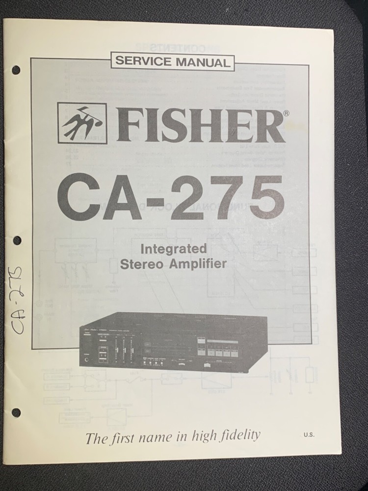 I am selling an Original Fisher CA-275 Amplifier Service Manual.. Item was used at a repair center .. Item will be shipped USPS First Class or Media Mail..