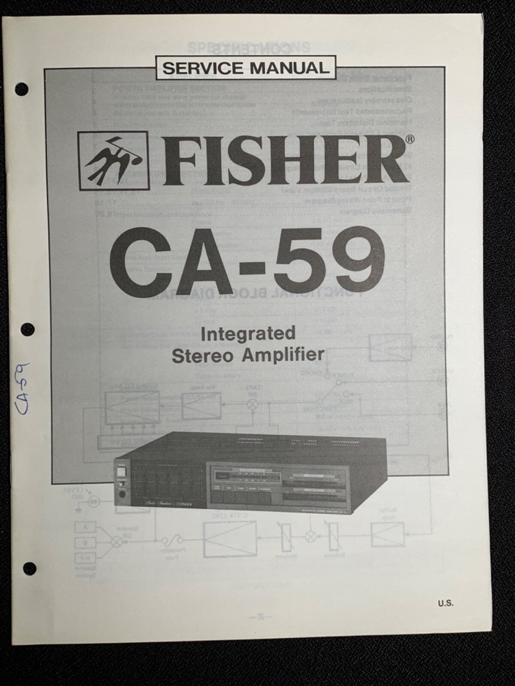 I am selling a Fisher CA-59 Service Manual Integrated Stereo Amplifier Original.. Item was used at a repair center .. Item will be shipped USPS First Class or Media Mail..