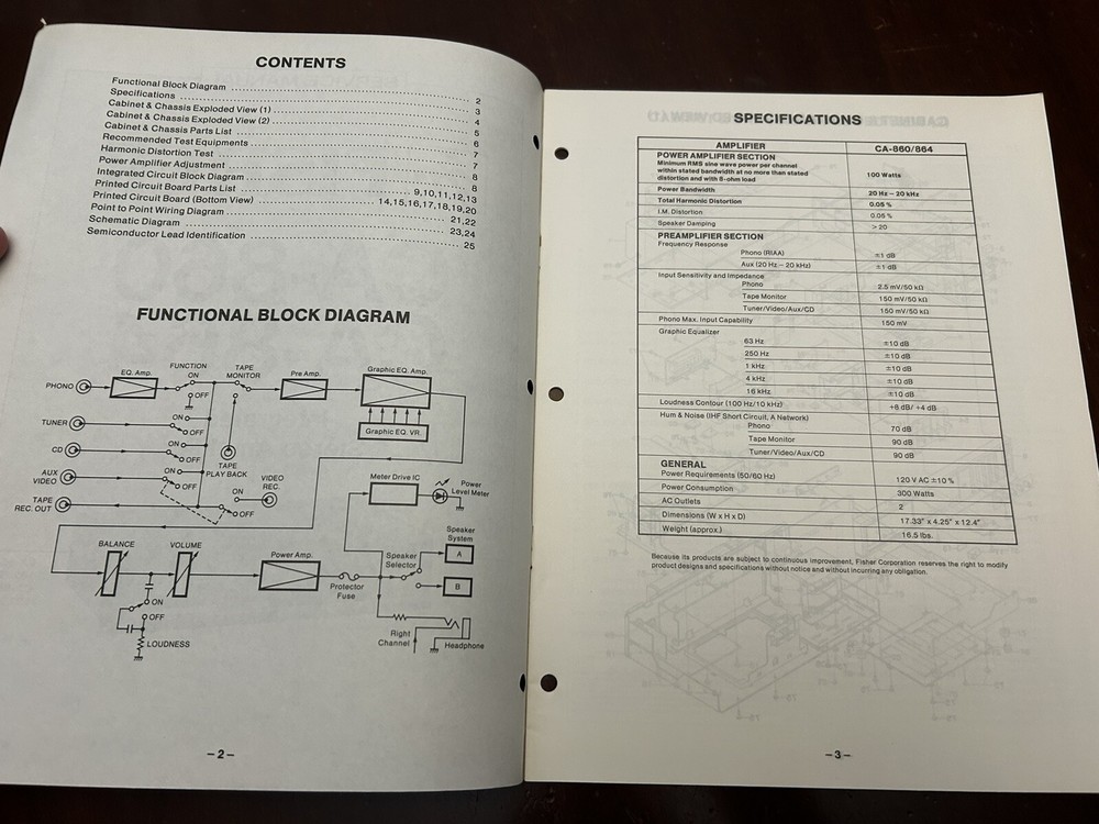 Fisher CA-860/CA-864 Vintage Stereo Amplifier Service Manual with Diagrams