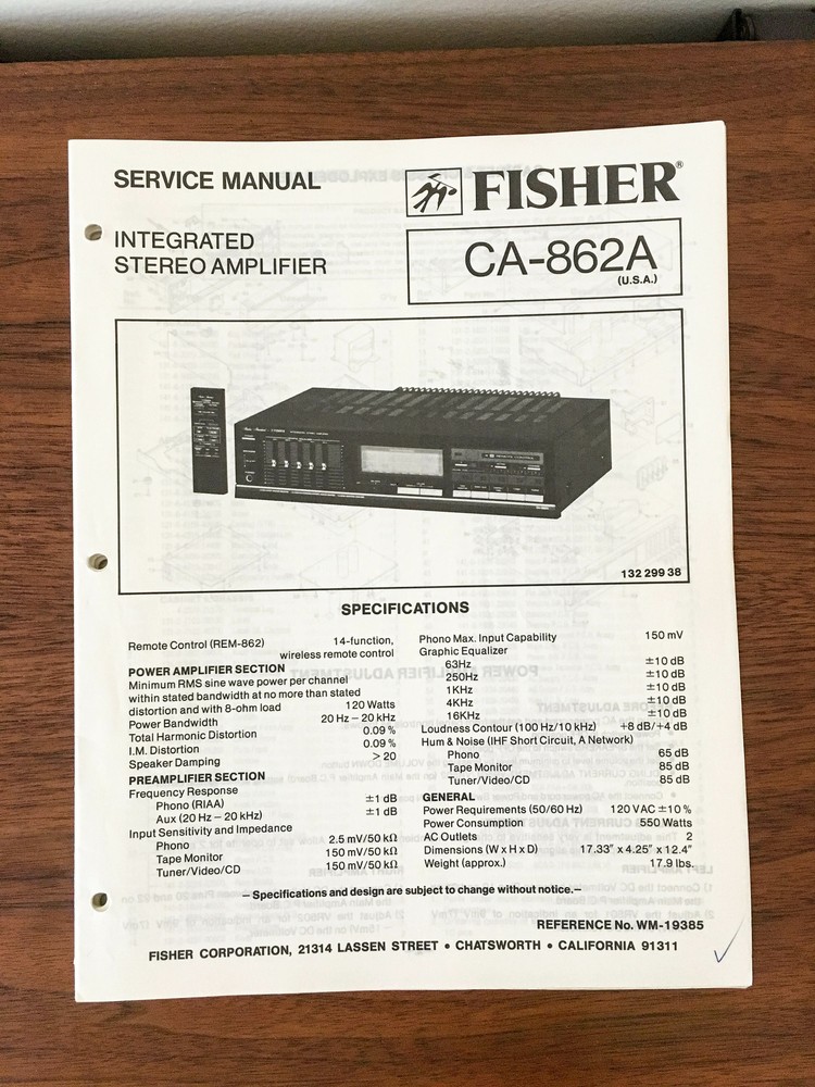 Fisher CA-862A Amplifier Original Service Manual Repair Guide