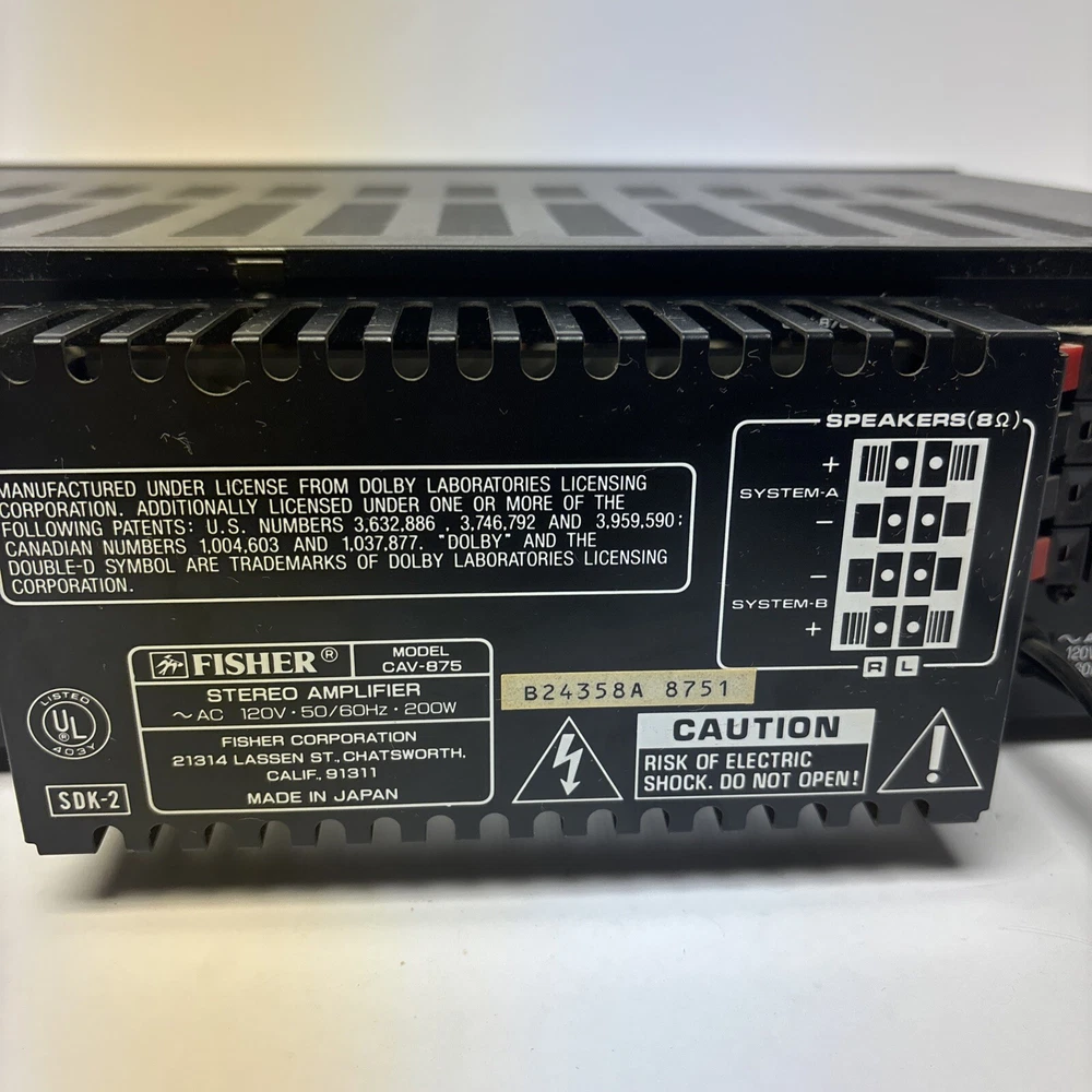 This Fisher CAV-875 Integrated Stereo Amplifier is a vintage unit made in Japan. It has been tested and is working perfectly. The brand, Fisher, is known for its high-quality audio equipment. This unit is perfect for anyone looking for a classic, vintage amplifier. The model, CAV-875, is a beloved name in the audio industry. This unit is sold as a complete unit, ready to be installed and used.