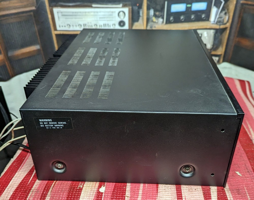 Fisher CA-880 stereo integrated amplifier with analog watt meters. Used but still plays and sounds great. Cosmetically it has a little dust and a few nicks as well as some of the writing to the left of the volume control missing - see pics.