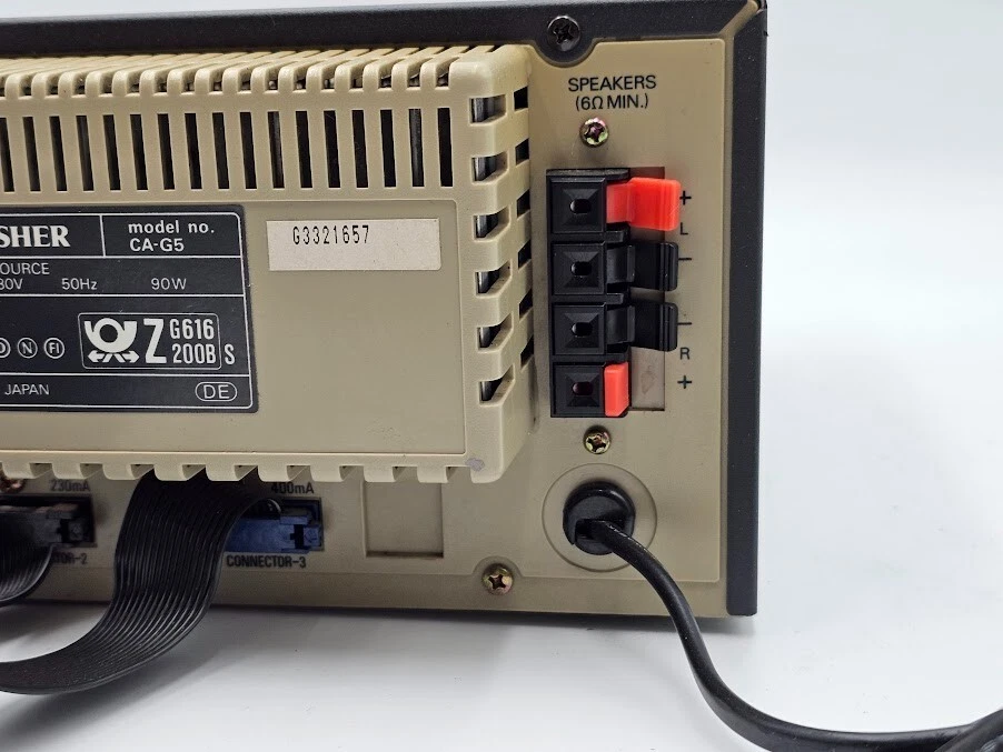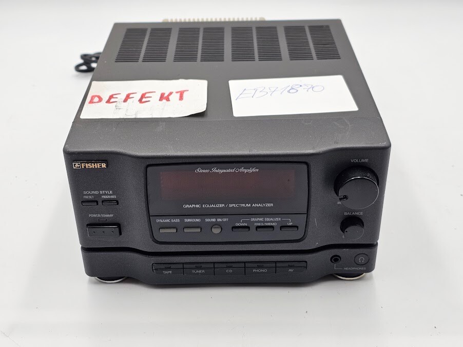 This Fisher CA-G5 stereo integrated amplifier is being sold as not working and is marked as defective . The unit shows general signs of use, including surface wear and dust, and has not been tested for full functionality. It's ideal for repair, refurbishment, or use as a donor for parts. It features an integrated graphic equalizer , spectrum analyzer , sound style presets , and dynamic bass functions. There are multiple input selectors for tape, tuner, CD, phono, and AV . Sold without any accessories or cables. Features: All items will usually be shipped within 3 business days of receiving cleared payment (excludes weekends and holidays). If you have some questions, feel free to ask and if you are not satisfied with your purchase before opening a case on Ebay, please contact us and we will try to resolve your issues as quickly as possible. Multiple items on one of the listings? If you see that we have multiple quantities of the same item in a photo, please note that it is representative of what you will receive. There may be slight variations in condition between the pictured item and the one you receive. For example, the scratches and dents may differ. Return Notes: 1. For items listed as "working" condition: Returns due to "changed mind," "doesn't fit," or other buyers remorse reasons are accepted. 2. For items received damaged or not as described: If the item arrives damaged or does not match the listing description, we will cover the return shipping costs. Supporting photos or video evidence must be provided before the return is approved. Please contact us immediately with the details and your order number to resolve the issue efficiently. 3. For items listed as "For parts or not working": Returns are not accepted, as these items are explicitly described as non-functional or for repair purposes only. Buyers acknowledge this condition at the time of purchase. 4. General return guidelines: Items must be returned in the same condition as received, including all original packaging and accessories (if applicable). Returns must be initiated through the eBay Returns Center and include a valid return reason. For corporate or small business customers: If you require an invoice for your purchase, please specify this in the buyer's notes section or reach out to us.Brand: Fisher Model: CA-G5 Type: Stereo Integrated Amplifier Equalizer: Graphic Equalizer / Spectrum Analyzer Input Selector: Tape, Tuner, CD, Phono, AV Audio Outputs: Headphone jack Voltage: AC 230V, 50Hz Power Consumption: 90W Country of Manufacture: Japan Condition: Defective / not working Accessories Included: None