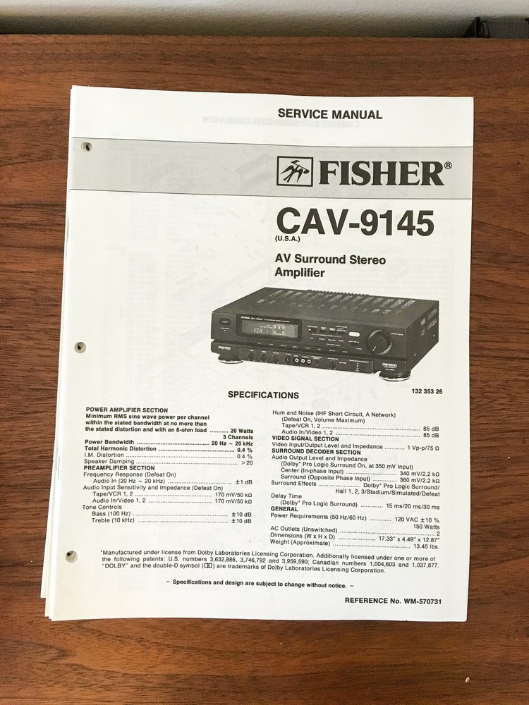 Fisher CAV-9145 Amplifier Repair Manual Original Factory Guide
