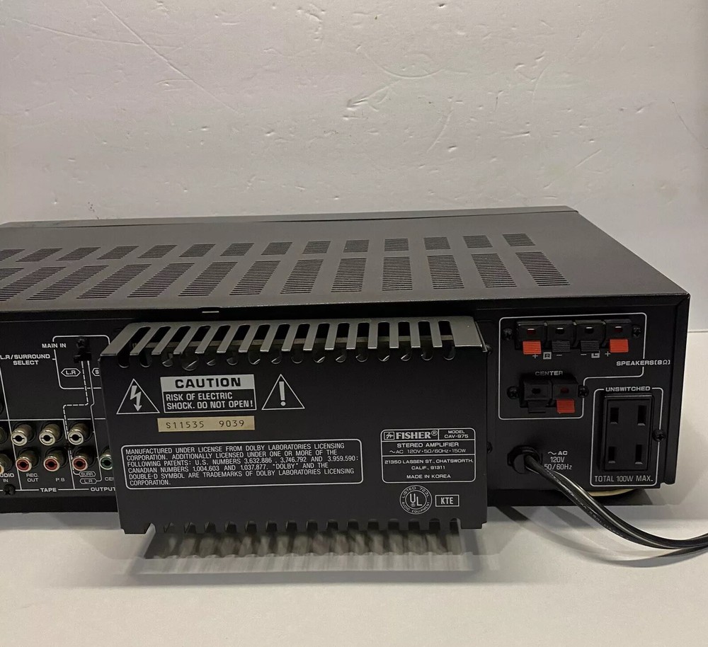 Fisher CAV-975 Studio Standard AV Surround Stereo Audio Component WORKS. THANK YOU FOR VISITING ROYAL CITY EXCHANGE. GREAT PRICES & FAST SHIPPING. Shipping And Returns: We Will Always professionally ship to make sure our client receives the item in safe and perfect condition. We strive to make sure that our customers receive their item as quickly as possible. Our store is centrally located in Kansas City, which means that you will usually receive your item within a few days of purchase. We Will Honor All Returns for Thirty Days, if you are not satisfied for any reason. Condition and What is Included: Everything that is included in your purchase will be in the photos. We encourage you to check all the photos to confirm what you will receive and the condition of the item. Shipping Charges: We charge flat rates for shipping. Please understand that this may or may not reflect the actual postage charged by the United States Post Office. In some cases, the actual postage may be higher or lower. The shipping charges represent part of the overall cost of the item and also reflect the handling fees and costs of shipping materials. Fisher CAV-975 Studio Standard AV Surround Stereo Audio Component WORKS. Fisher Studio Standard AV Surround Stereo Audio Component Amplifier CAV-975.