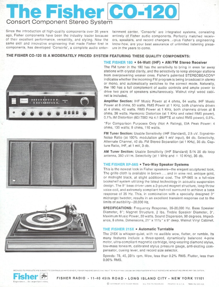 Fisher - CO-120 Music System - Original Sales Brochure - Very good Condition. Shipping to the U.S. is 3.75 - International shipping: Ebay international Shipping Program Payment by Ebay Managed Payments.