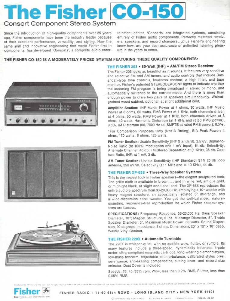 Fisher - CO-150 Music System - Original Sales Brochure - Very good Condition. Shipping to the U.S. is 3.75 - International shipping: Ebay international Shipping Program Payment by Ebay Managed Payments.