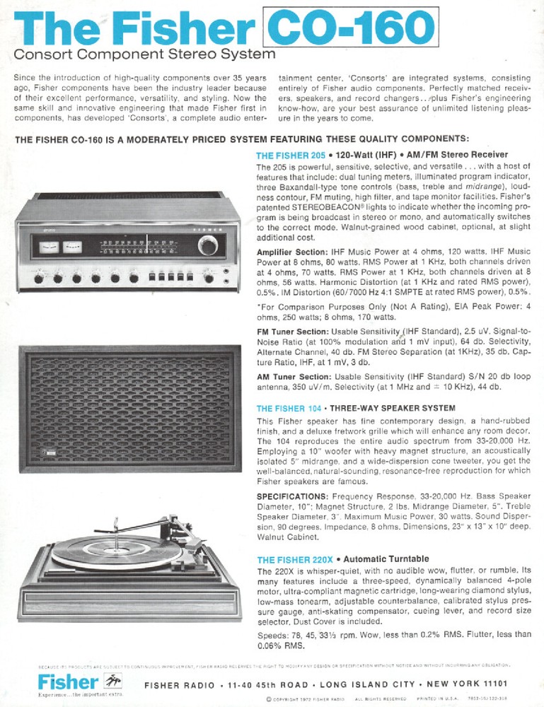 Fisher - CO-160 Music System - Original Sales Brochure - Very good Condition. Shipping to the U.S. is 3.75 - International shipping: Ebay international Shipping Program Payment by Ebay Managed Payments.