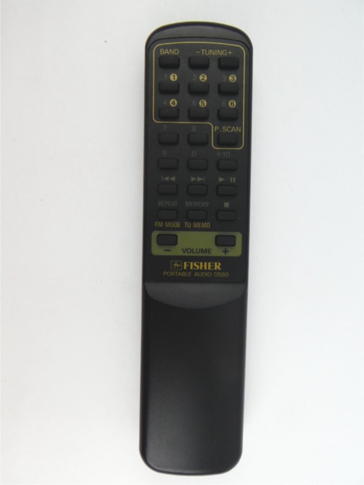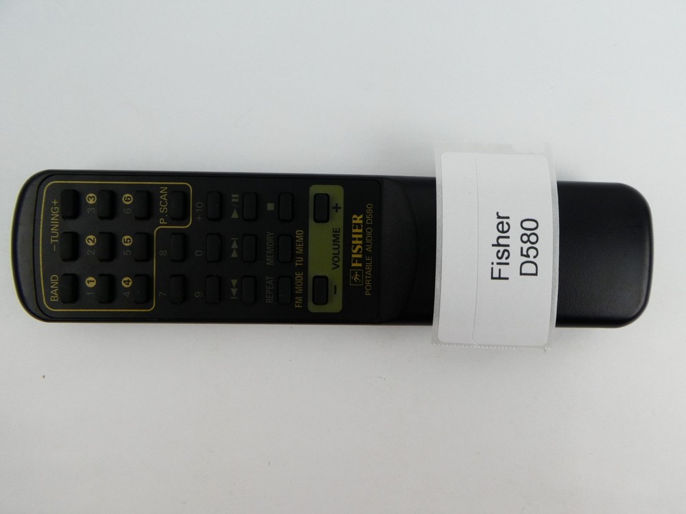 Fisher D580 D-580 Portable Audio System Remote Control OEM Fisher D580 D-580 Portable Audio System Remote Control OEM For sale is an original Genuine Fisher D580 D-580 Portable Audio System Remote Control Remote has been fully tested and has a strong IR signal. Remote control has signs of normal use and may have lite surface scuff marks, scratches, etc. Clean battery chamber. Batteries not included. I only ship to U.S.A. locations with a verified address. Items are generally shipped within 24 hours of receiving payment excluding weekends, holidays, or severe weather. I ship USPS and a tracking number is provided for every shipment.