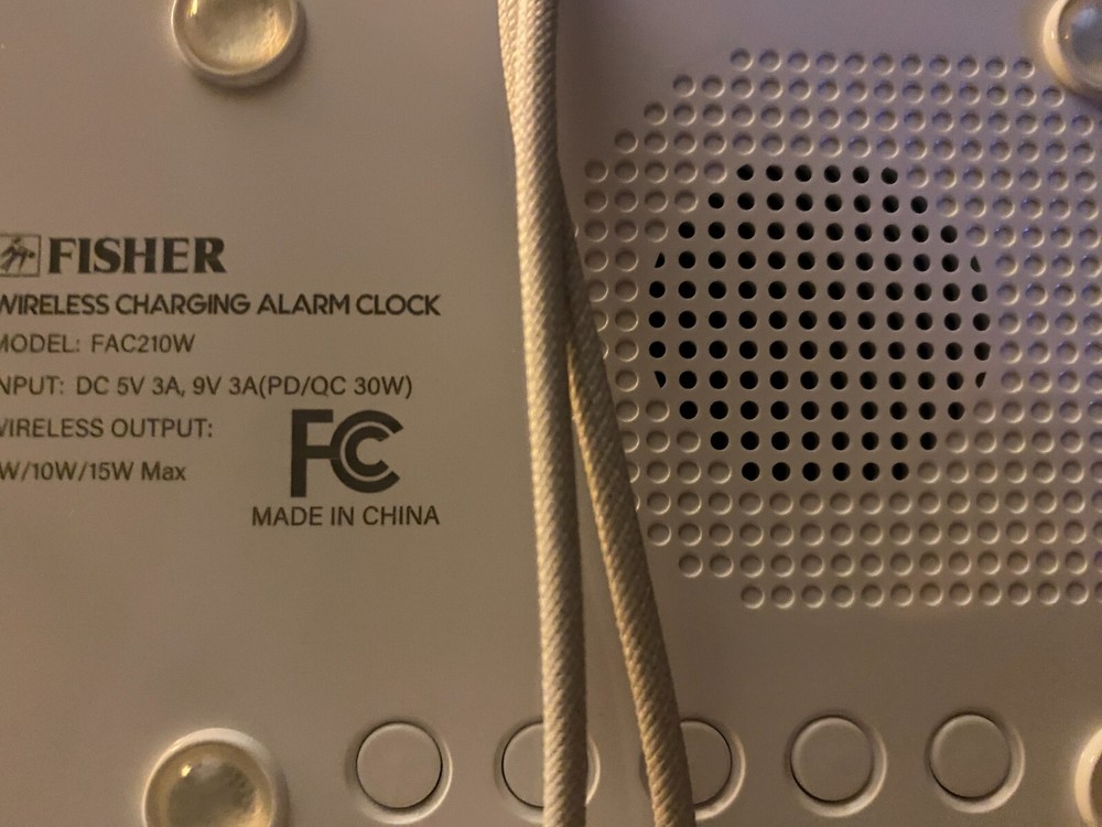 The Fisher Digital LED Wireless Charging Alarm Clock Model FAC10W is a modern oval-shaped alarm clock featuring a warm yellow light lighting effect, Bluetooth speaker, RGB color change, touch control, 15 W wireless charging, and a 24-hour LED display. It is designed for use in bedrooms, home offices, or bathrooms. This clock also functions as a night light and has a sleek white finish with a plastic frame.