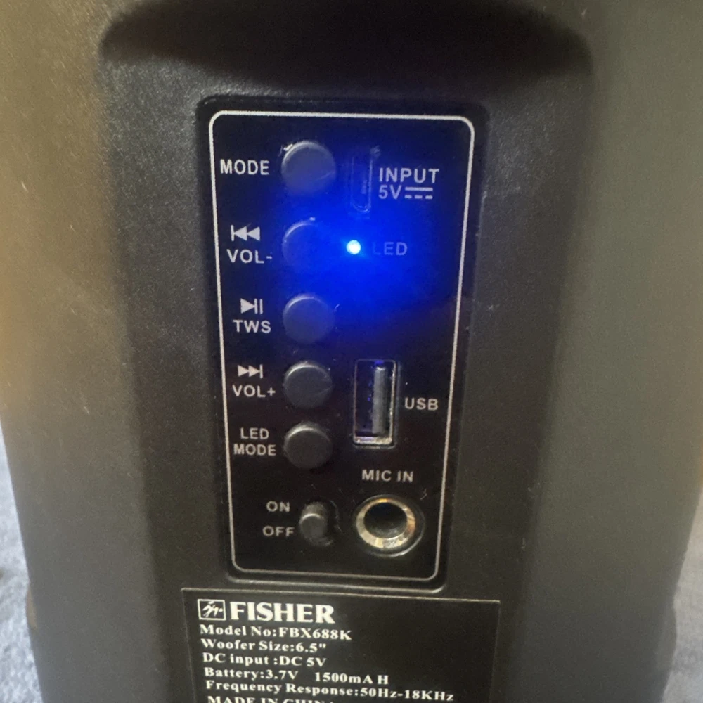 | Features | Bluetooth, AUX, USB, Microphone input, Wireless, FM |