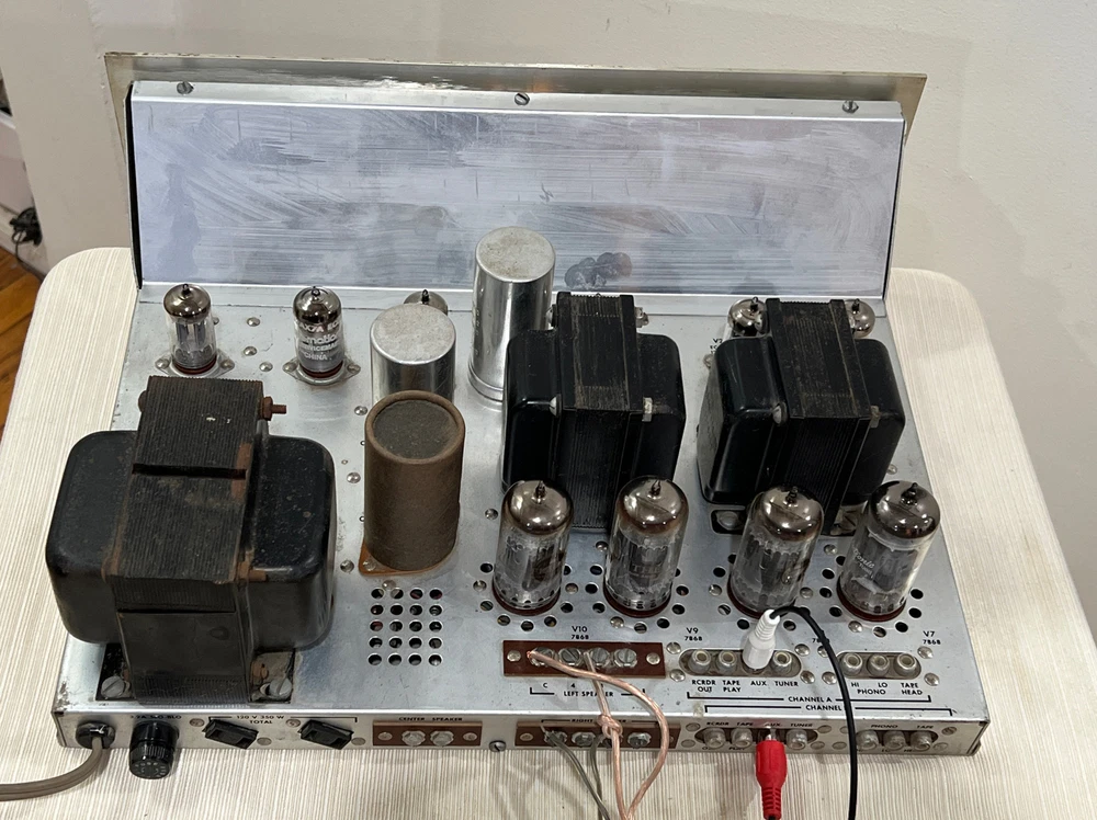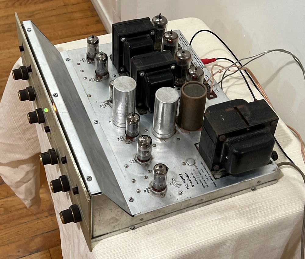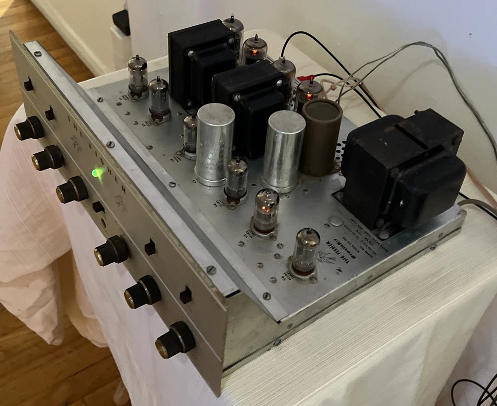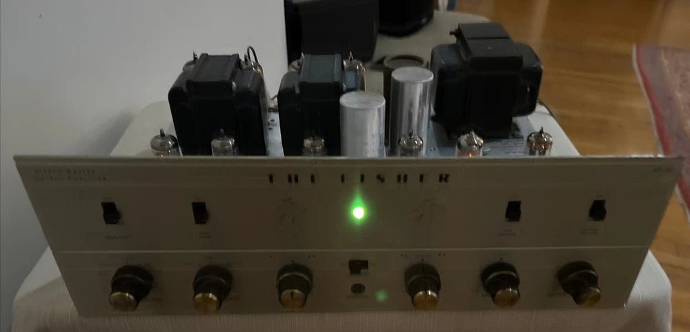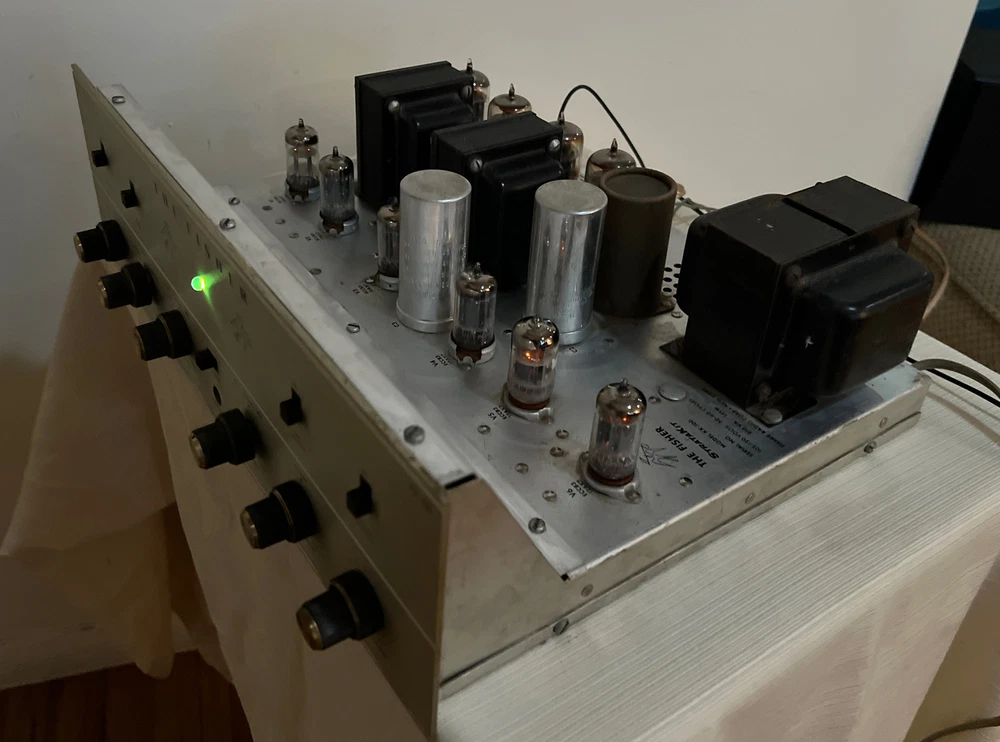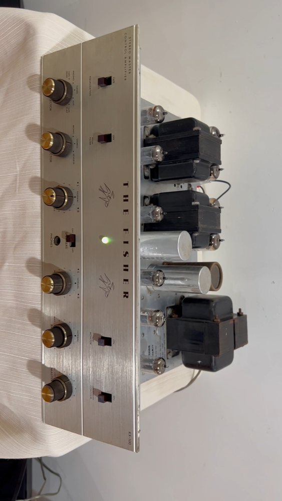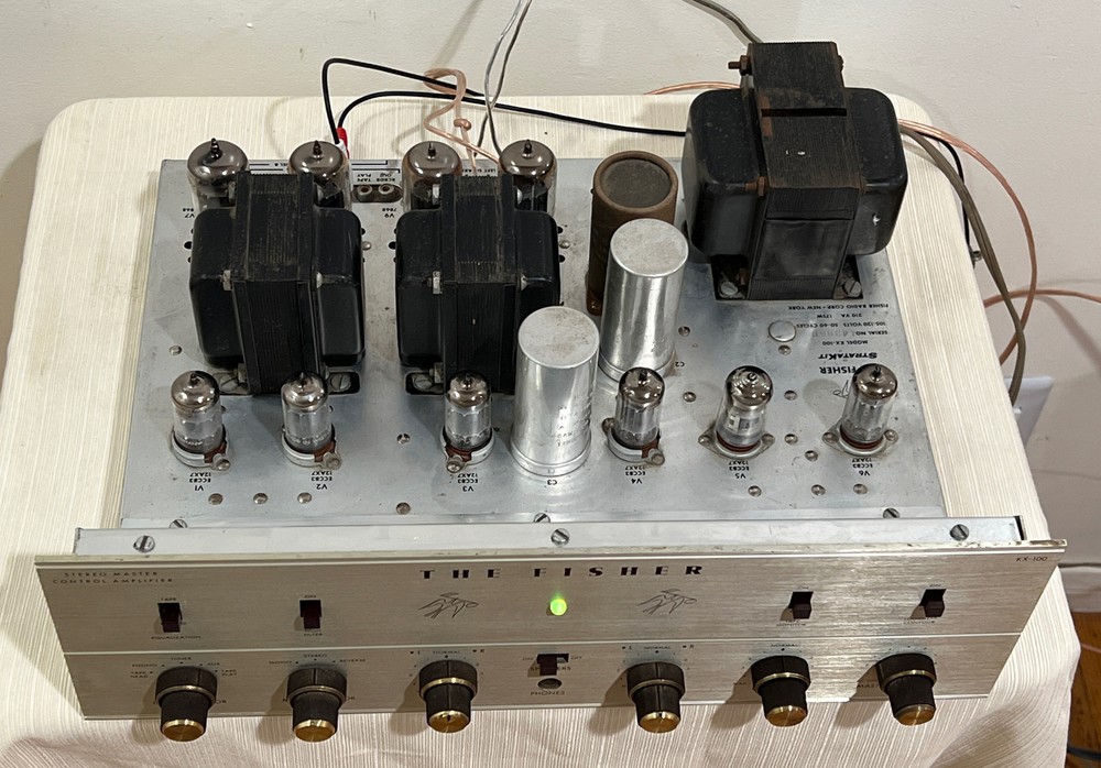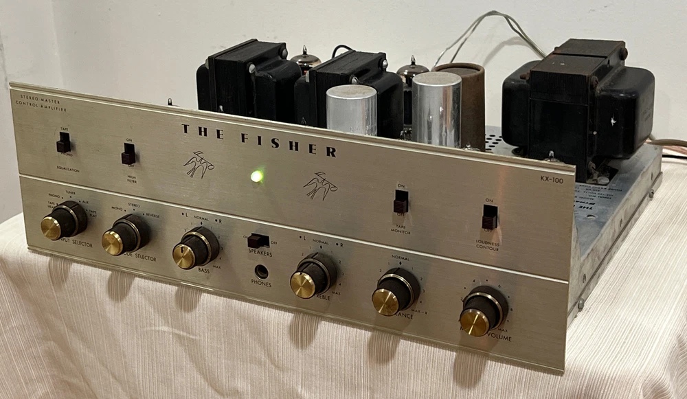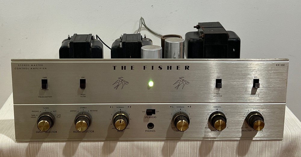 Fisher KX-100 Vintage Tube Amplifier selling tested in working condition , being sold in vintage used condition due to age serviced required for everyday used as you can see in pictures the light jewel is green color it was found in that condition please look at all pictures for cosmetic condition ships with fedex properly pack with signature required and fully insured final sale no return no refund