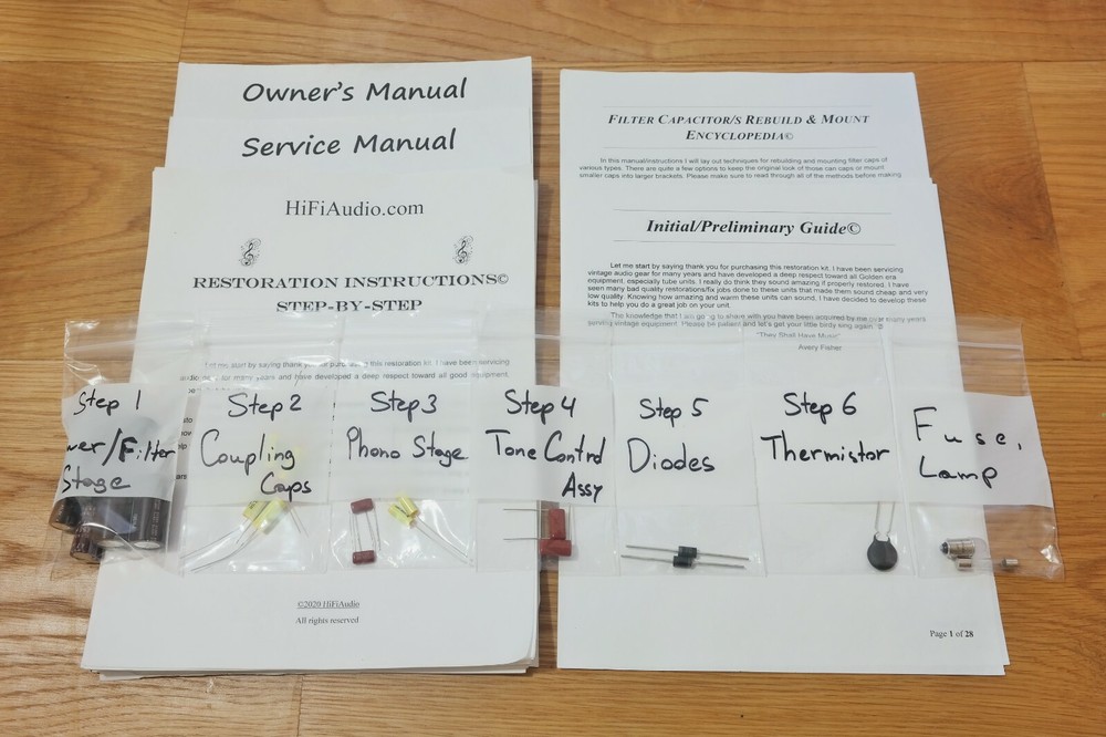 This listing is for 1 x FULL kit for Fisher KX90. The scarcity of good, honest techs who can do good and reasonably priced restoration/rebuild of audio equipment made me start offering this restoration kit. In today's day and age it is very hard to come by a knowledgeable tech who can service your audio gear well. I have seen many poor quality restorations of equipment that cost way too much to its owners. In 99% of the cases there were only a few parts replaced, instead of a full and proper restoration job. Please note a proper restoration must replace all electrolytic caps on all boards. DO NOT fall for partial kits that restore just one PCB ( power supply, power amp etc). That is not a good/proper way to restore your audio equipment.To put it simply: it is the same as with car tires. One should never replace just one new tire and keep the other/others worn out tires on (Google it, a very interesting read). A proper rebuild requires a full recap of all PCBs. On the other hand, if one succeeds in finding a good tech, a wait time is usually 6-12 months for the unit to be serviced and costs are sky-high!!! I have been servicing audio equipment for many years and have developed deep respect toward all good equipment. Knowing how amazing and warm these units can sound, I have decided to put together this kit. It includes very good upgrades and improvements that MUST be done to the unit. This restoration kit will make a huge difference in the sound quality. All the parts are of high quality Japanese Nichicon / Rubycon / WIMA / IC / United Chemi capacitors. I am extremely particular about the quality of the parts provided in this kit. Knowing how many bogus/fake caps, diodes, resistors etc. are out there, I source all the parts from reputable whole-sellers and buy them in bulk. “They Shall Have Music”- Avery Fisher Included in this kit: 1. Power/Filter stage upgrade with authentic Nichicon / Nippon / WIMA / IC / United Chemi electrolytic capacitors. 2. Detailed instruction with colorful images, schematics, manuals (all of these are in electronic form, I consider these much better than printed version due to zoom availability). 3. Schematics 4. Complete audio path upgrade with high quality WIMA or IC (Illinois capacitor) film capacitors. 5. Parts for compete recap of all the electrolytic capacitors. 6. Complete recap of all oil, film, paper, lytic caps. 7. Diodes. 8. Inrush thermistor (to limit the initial current inflow). 9. Bridge rectifier. 10. Transistors (PNP, NPN). 11. LED dial and indicator bulbs 12. 1 x main fuse 13. Instructions on how to clean the chassis. 14. Instructions on how to clean a faceplate 15. Instructions on how to polish knob covers. 16. Support/help to a reasonable extend in case you need it. (This is what makes us different from other sellers.) -------- Also available NEW production volume control -----------> LINK We may also be interested in purchasing your equipment. Feedback From Buyer Date/time Item as described. Quick shipment. AAA++ Transaction. r*****n ( 1084 ) 2019-01-22 23:00:27 PCBs. requires a full recap of all the PCBs.